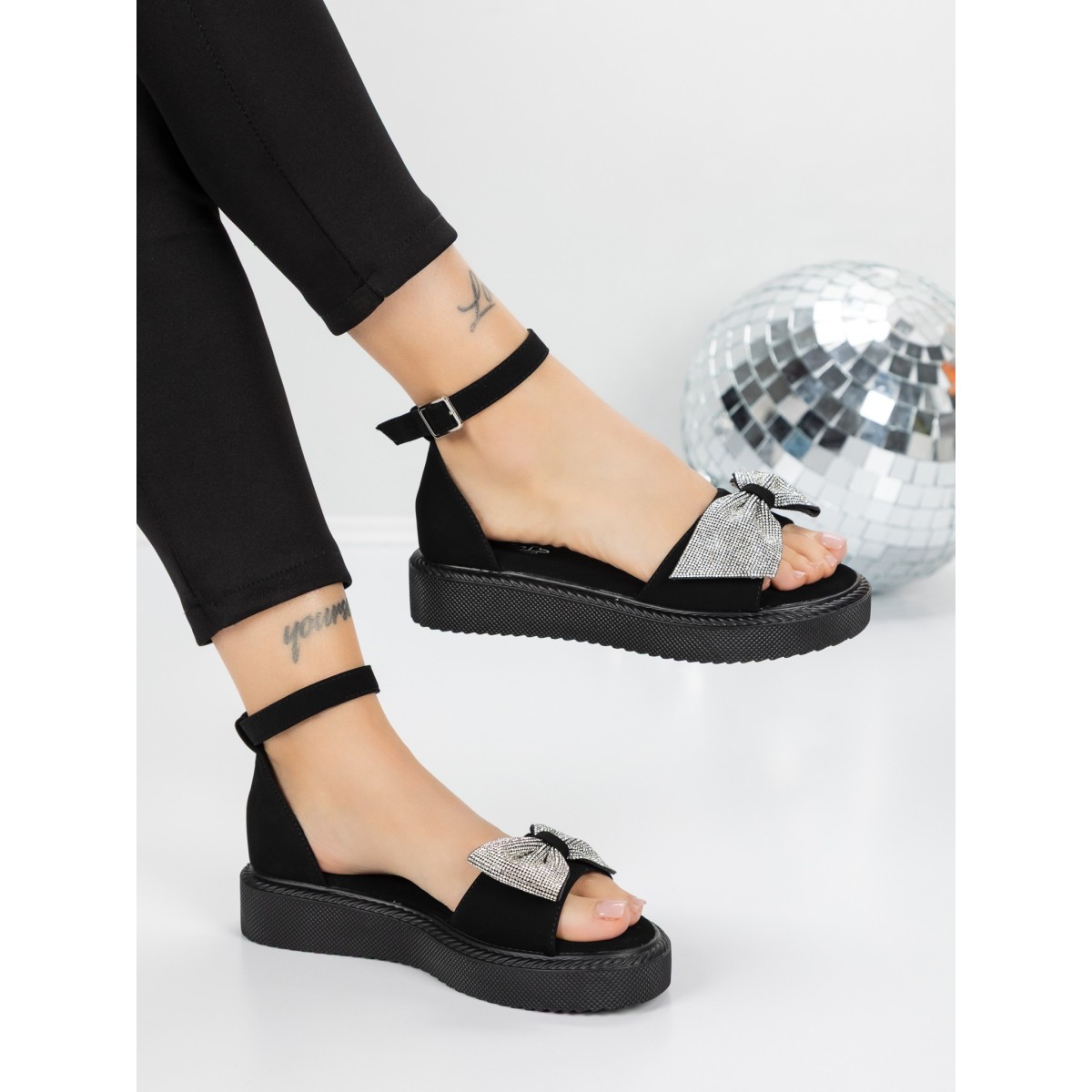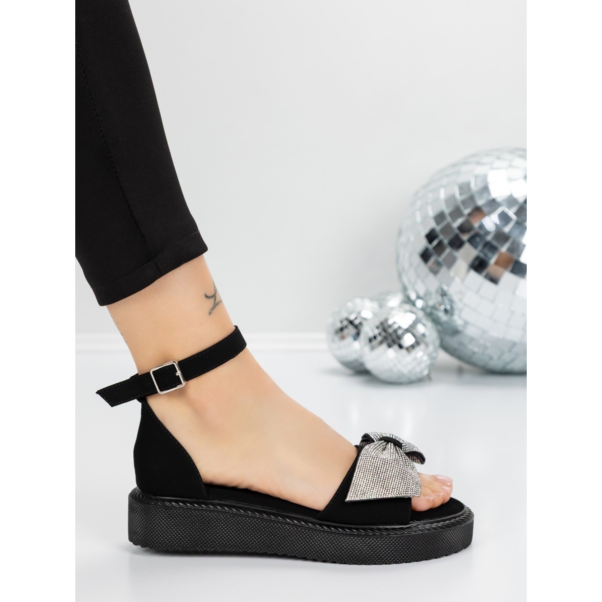 Sandale Dama cu Talpa Joasa 5H22 BLACK-WHITE | MEI