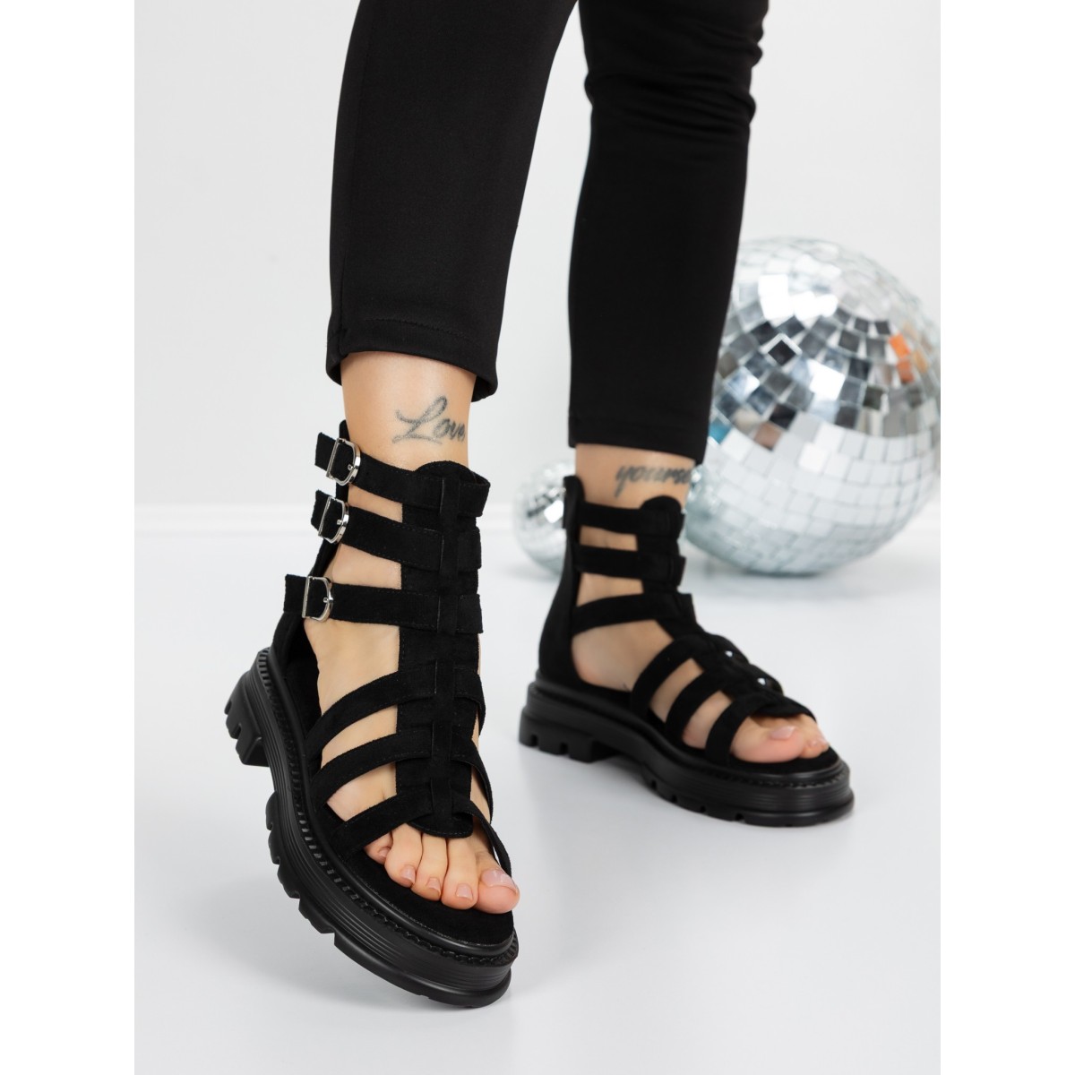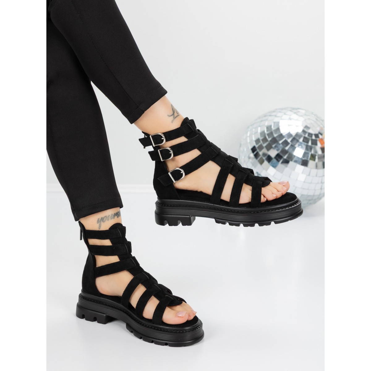 Sandale Dama cu Talpa Joasa 5HXS11 Negru | Mei