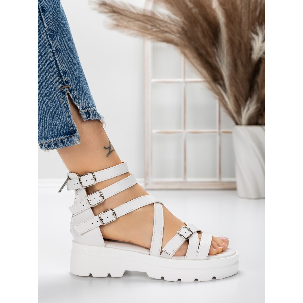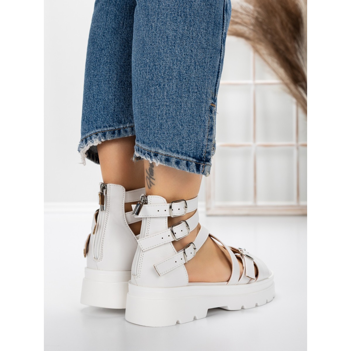 Sandale Dama cu Talpa Joasa 5HXS15 Alb | Mei