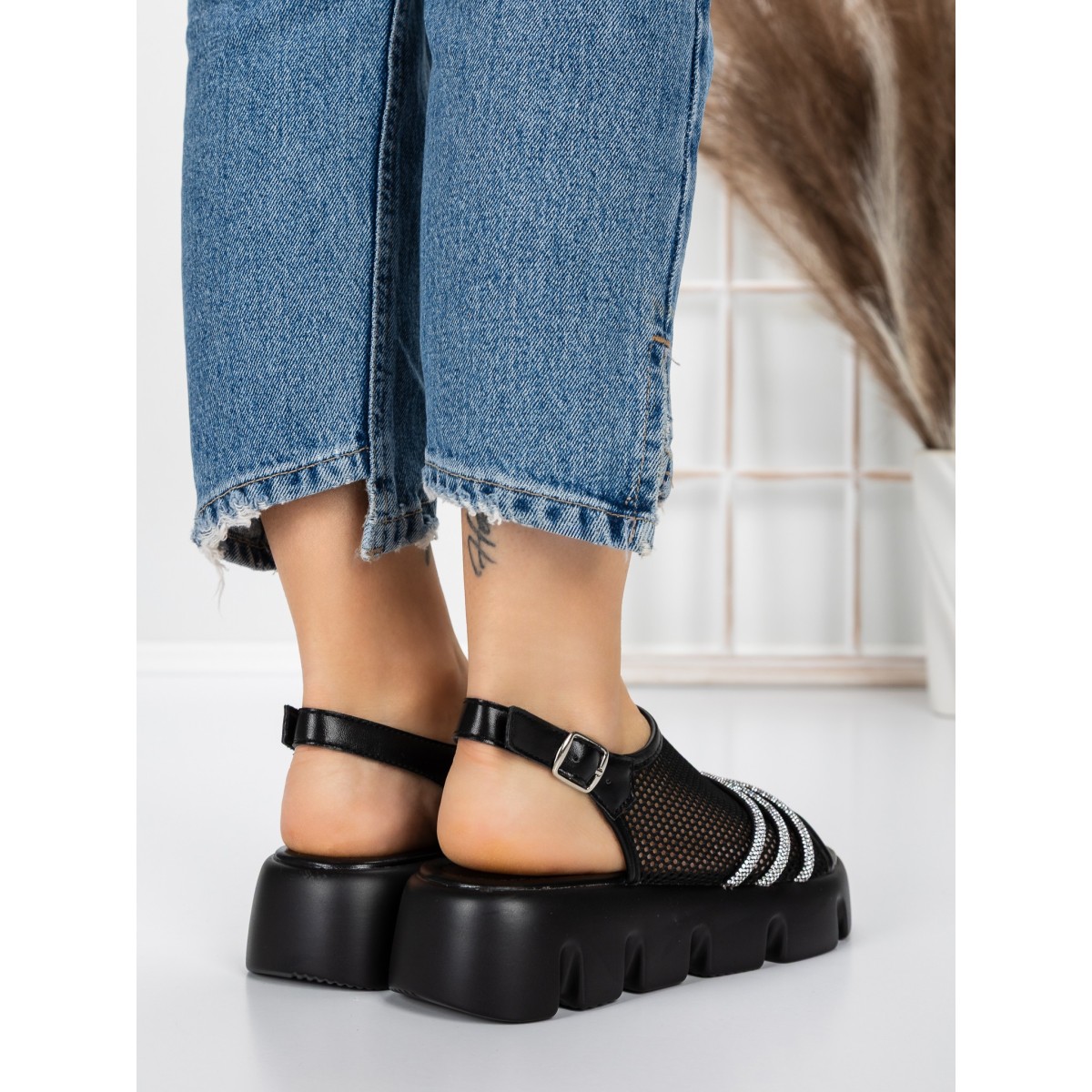 Sandale Dama cu Talpa Joasa 5HXS21 Negru-Alb | Mei