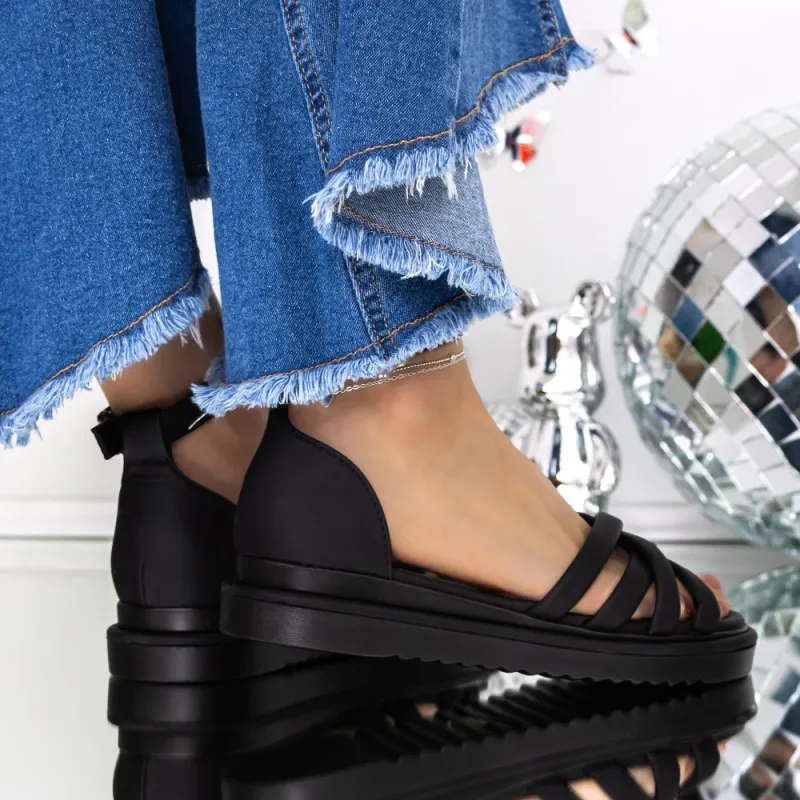 Sandale Dama cu Talpa Joasa 3GZ66 Negru | Reina