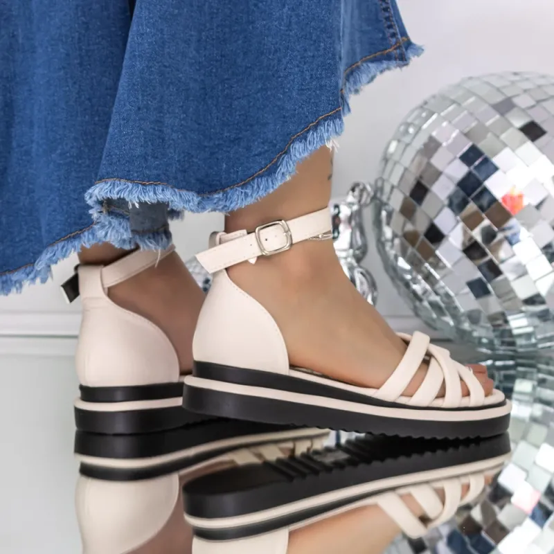Sandale Dama cu Talpa Joasa 3GZ66 Bej | Reina