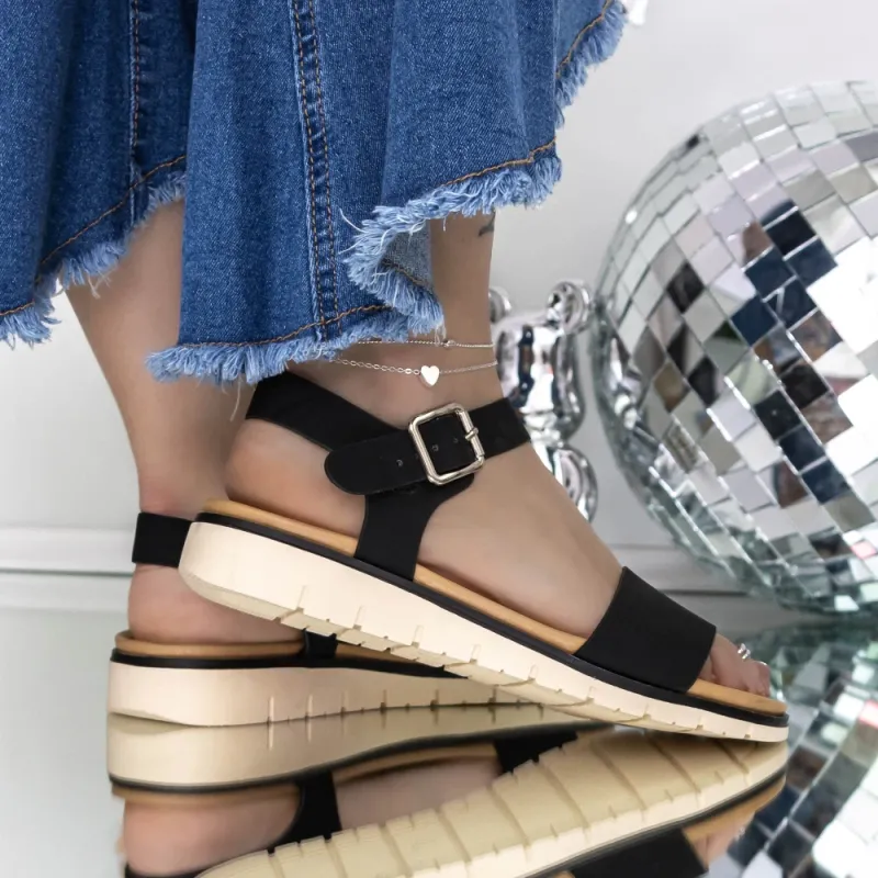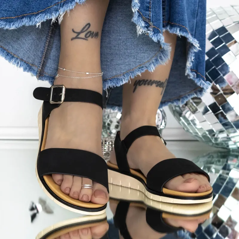 Sandale Dama cu Talpa Joasa 3GZ28 Negru | Reina