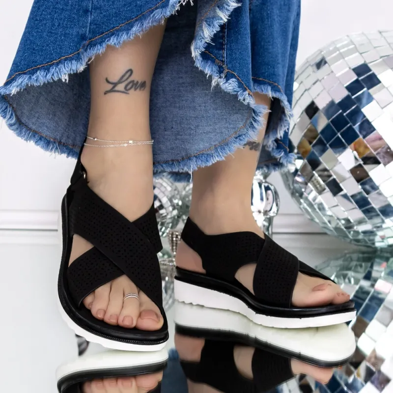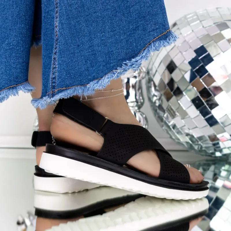 Sandale Dama cu Talpa Joasa 3GZ26 Negru | Reina
