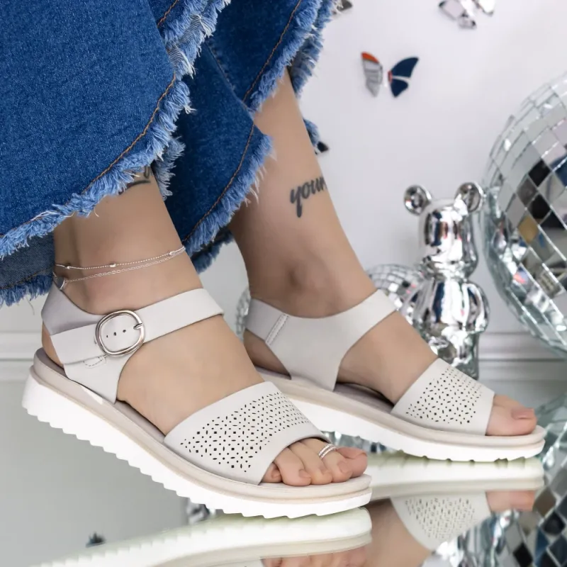 Sandale Dama cu Talpa Joasa 3GZ27 Gri | Reina