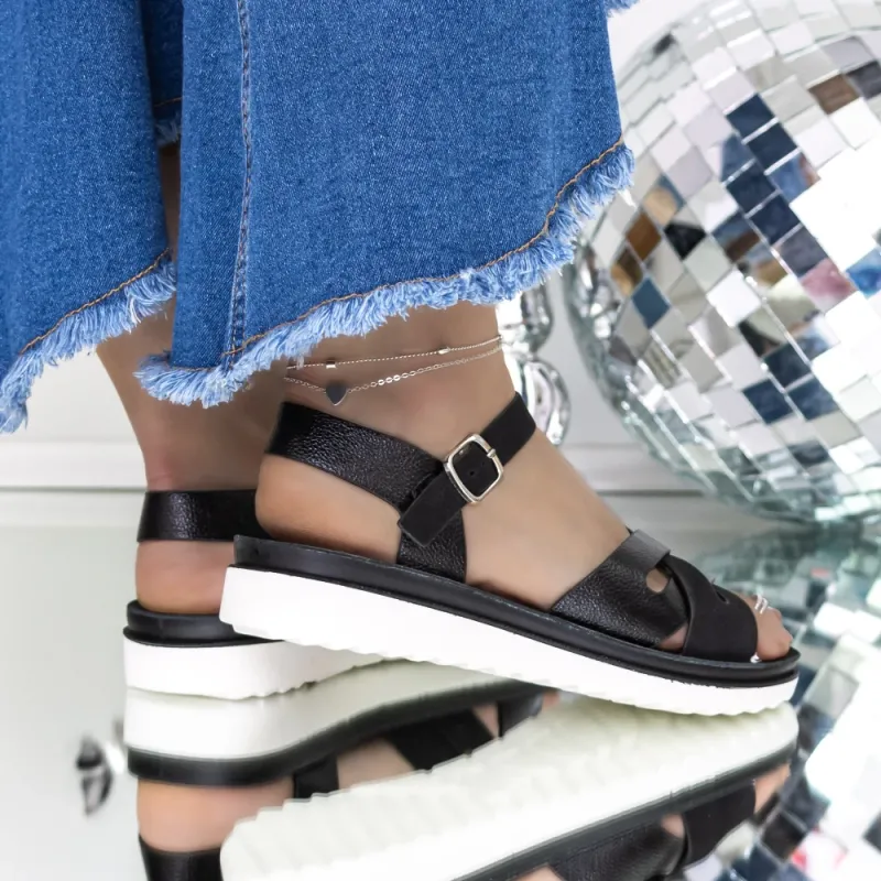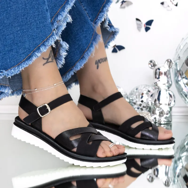 Sandale Dama cu Talpa Joasa 3GZ29 Negru | Reina