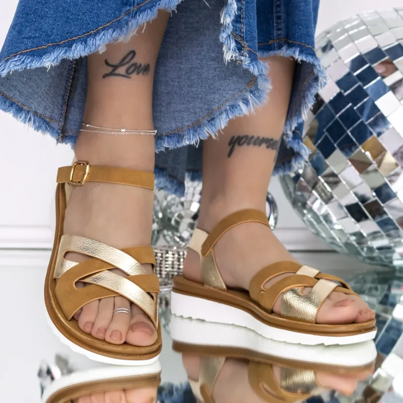 Sandale Dama cu Talpa Joasa 3GZ29 Galben | Reina