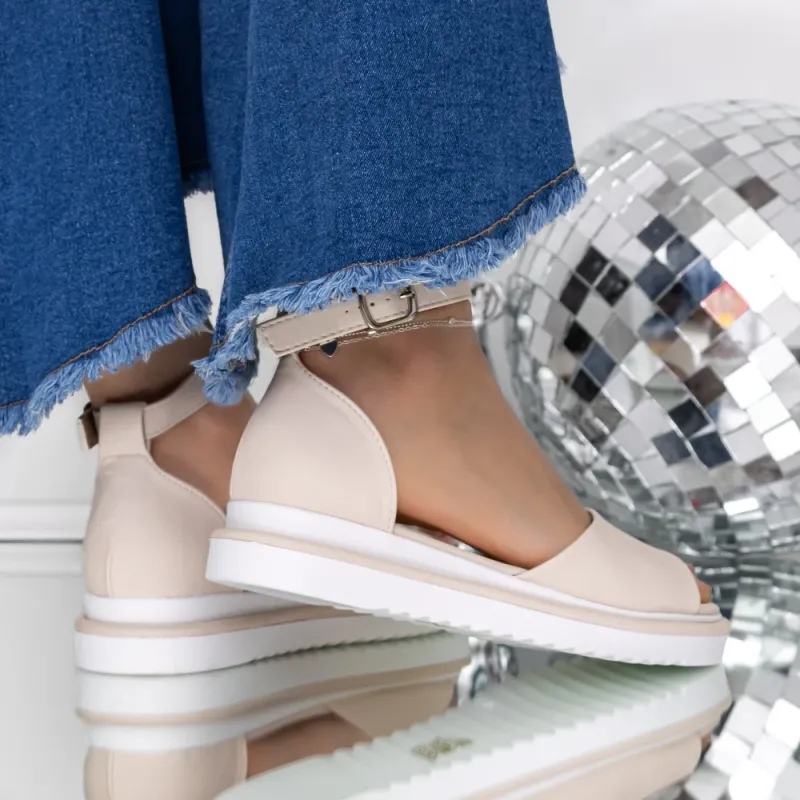 Sandale Dama cu Talpa Joasa 3GZ69 Bej » Reina.Ro