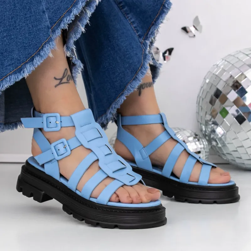 Sandale Dama cu Talpa Joasa 3HXS52 Albastru | Reina