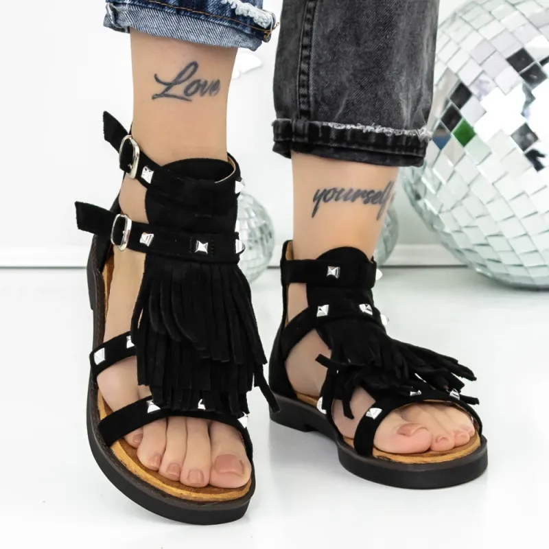 Sandale Dama cu Talpa Joasa 3H27 Negru | Reina
