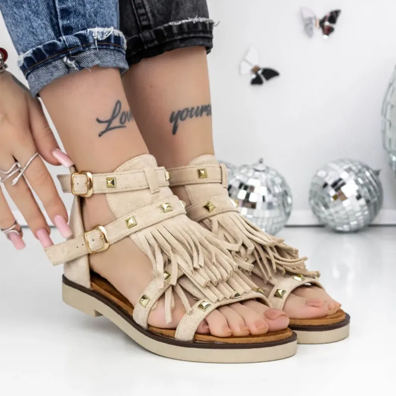 Sandale Dama cu Talpa Joasa 3H27 Bej | Reina