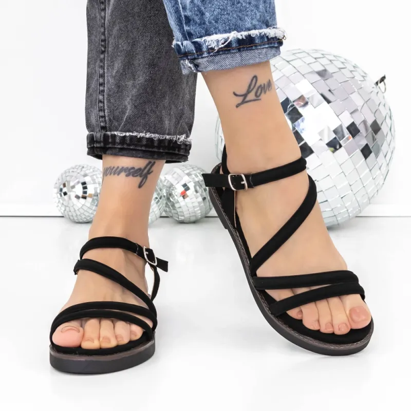 Sandale Dama cu Talpa Joasa 3H26 Negru | Reina