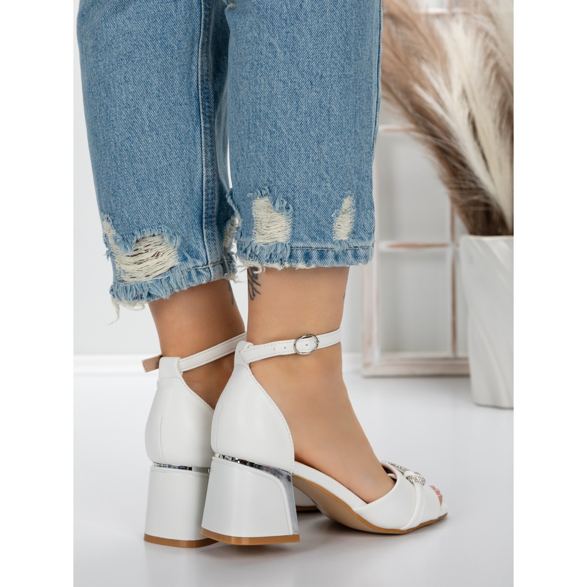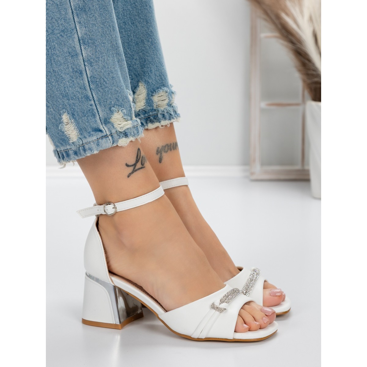 Sandale Dama cu Toc Gros 5GZ58 Alb | Mei