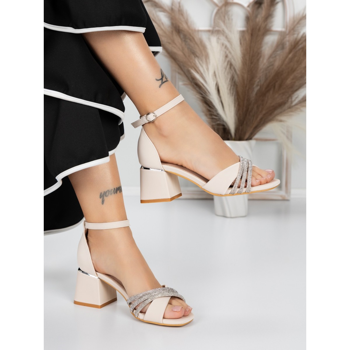Sandale Dama cu Toc Gros 5GZ57 Bej | Mei