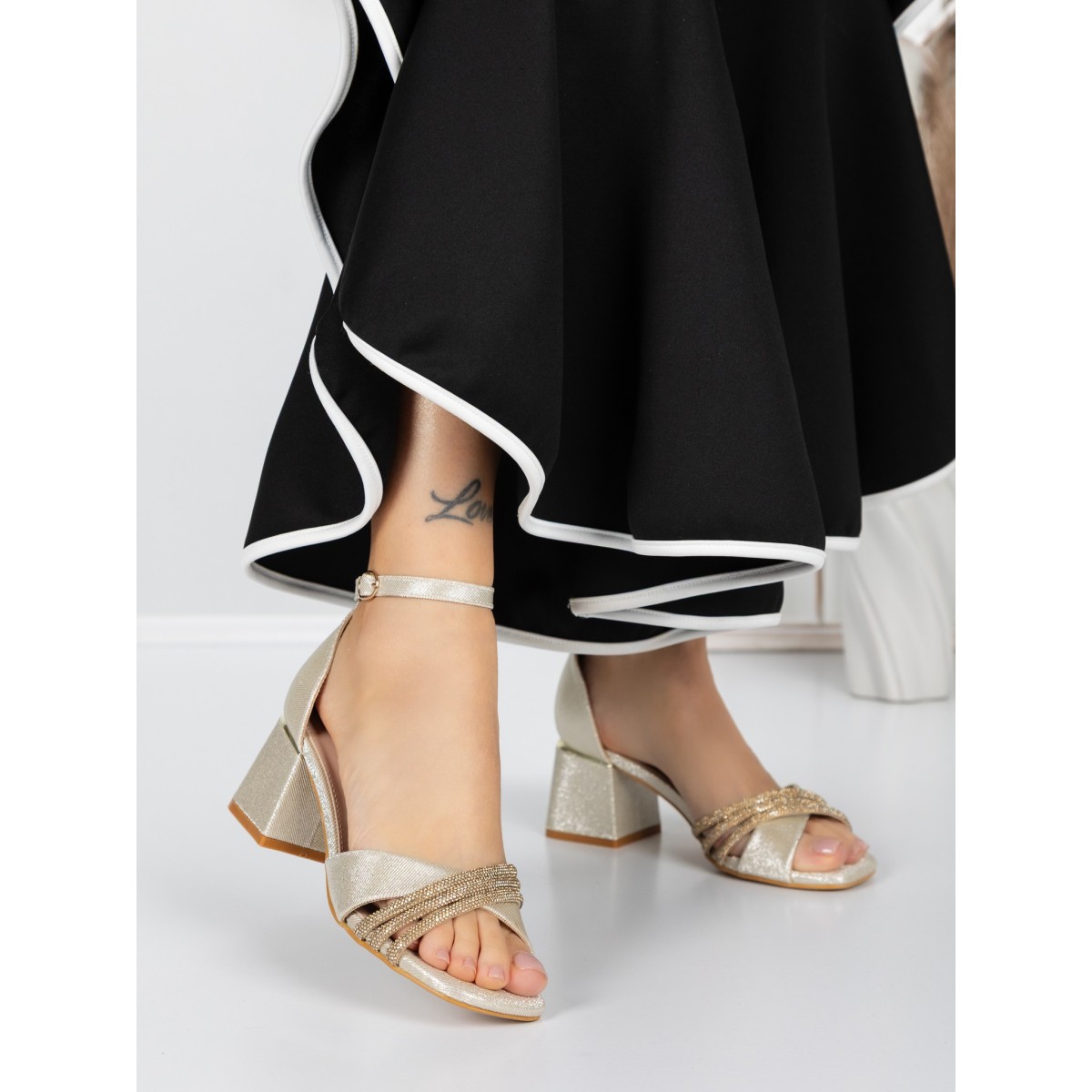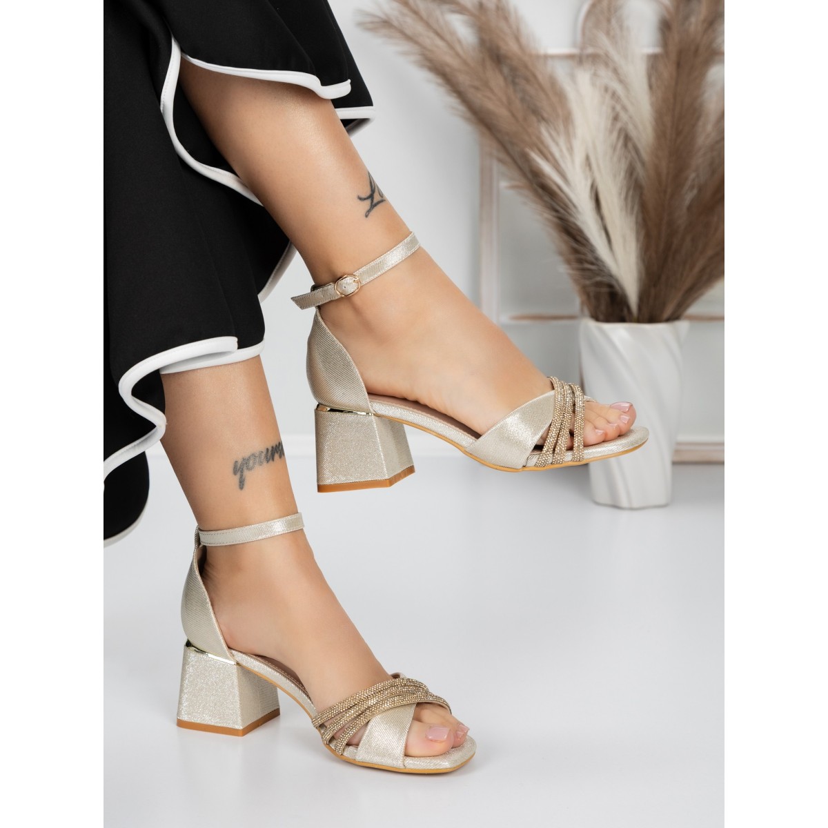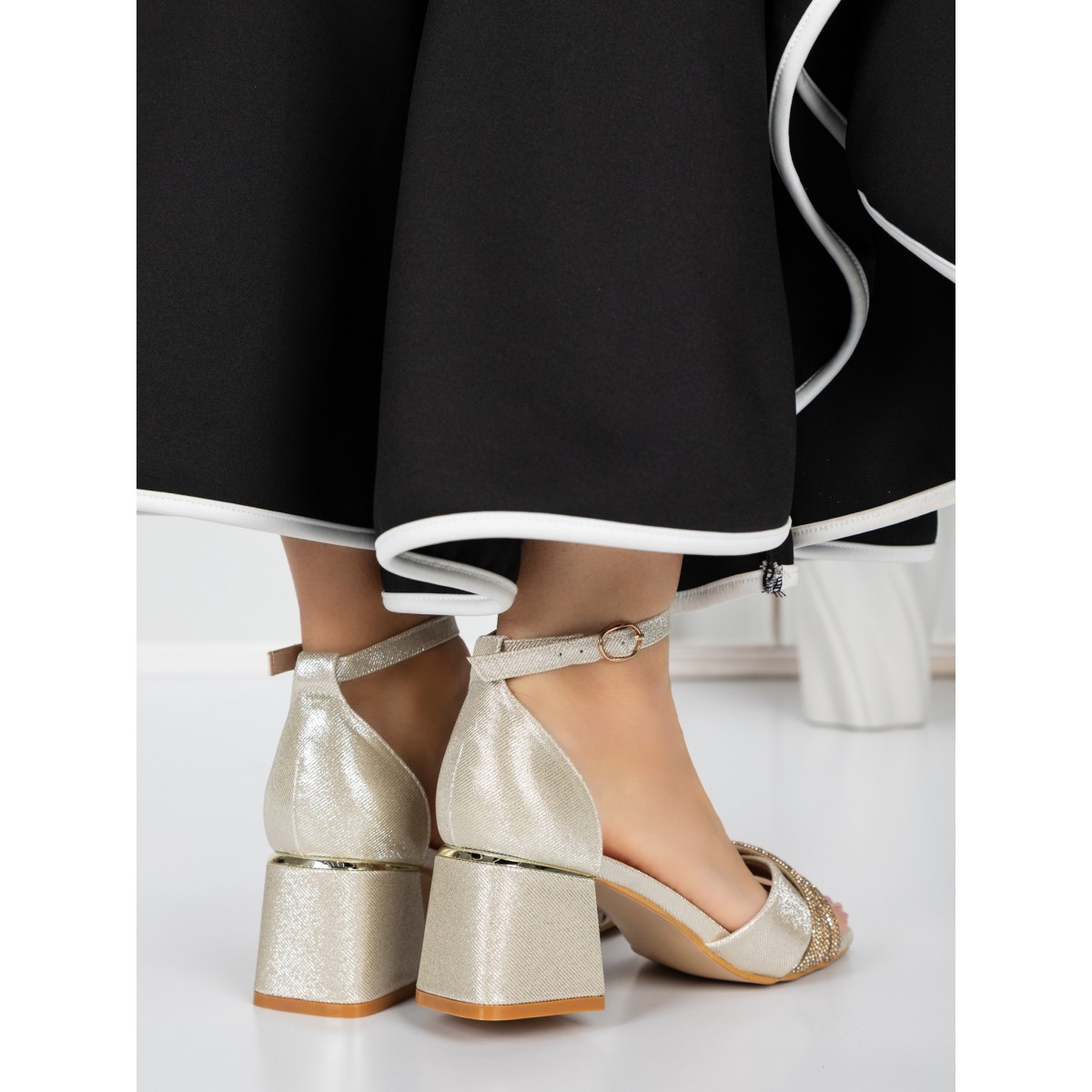 Sandale Dama cu Toc Gros 5GZ57 Auriu | Mei