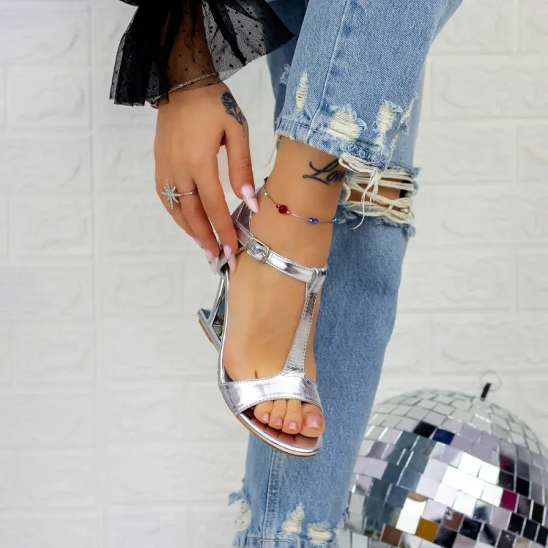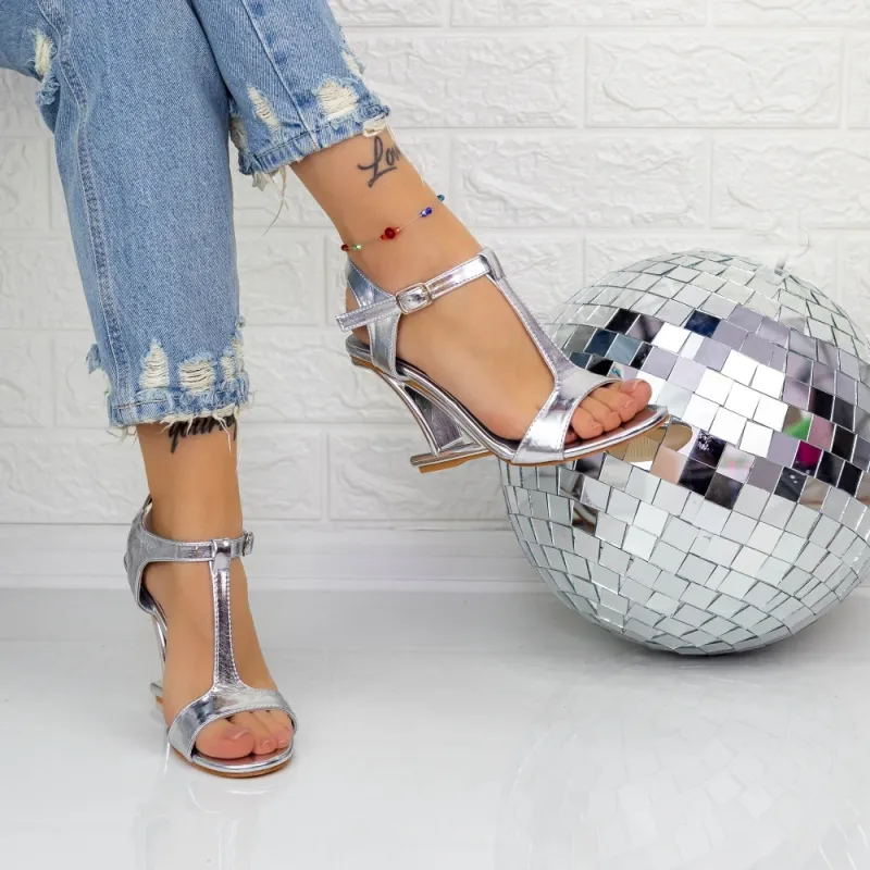 Sandale Dama cu Toc gros TN-75 Argintiu Reina