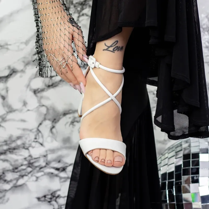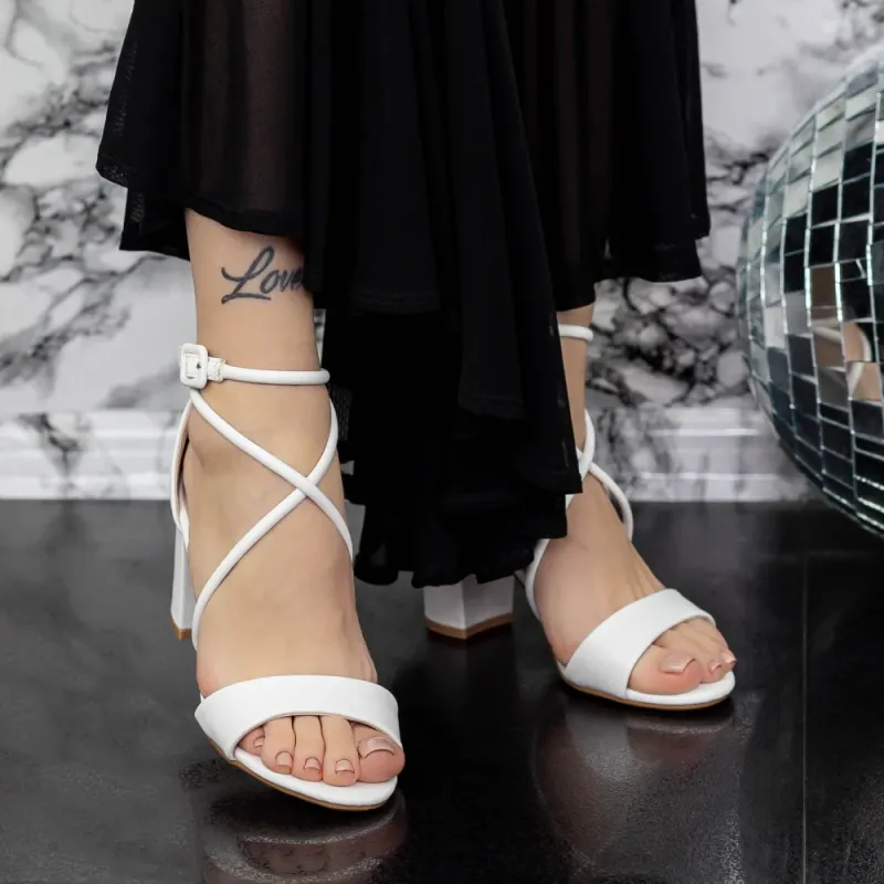Sandale Dama cu Toc gros 2YXD75 Alb Mei