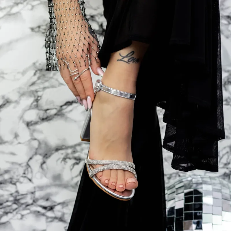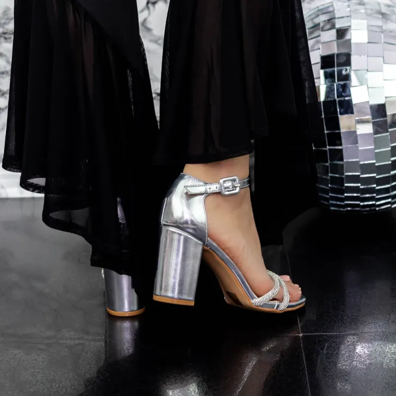 Sandale Dama cu Toc gros 2XKK31 Argintiu Mei