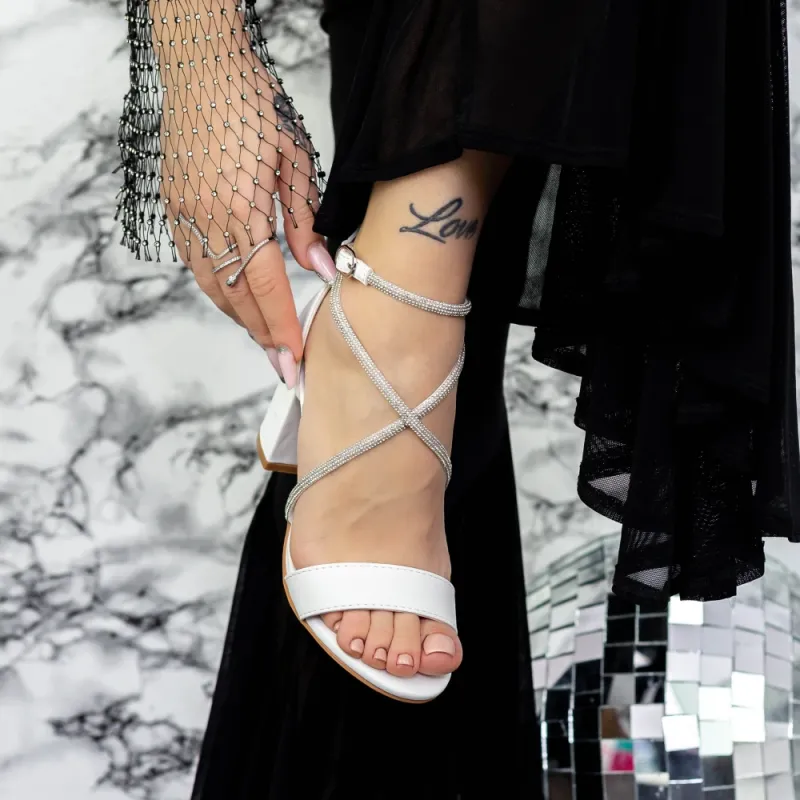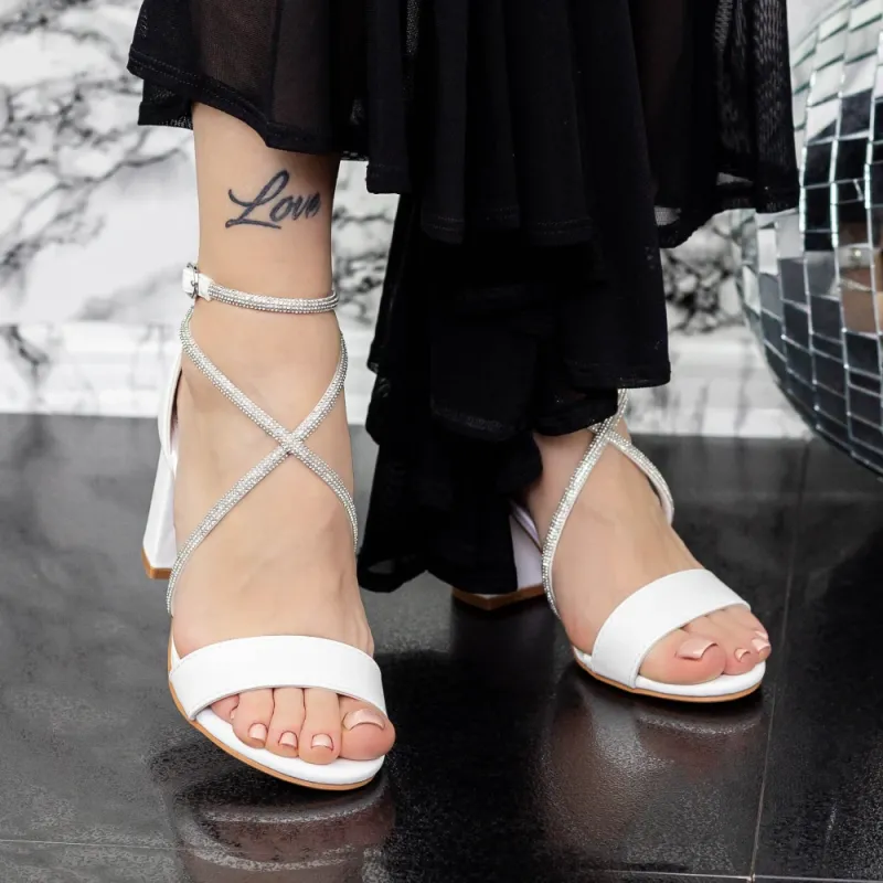 Sandale Dama cu Toc gros 2XKK59 Alb Mei