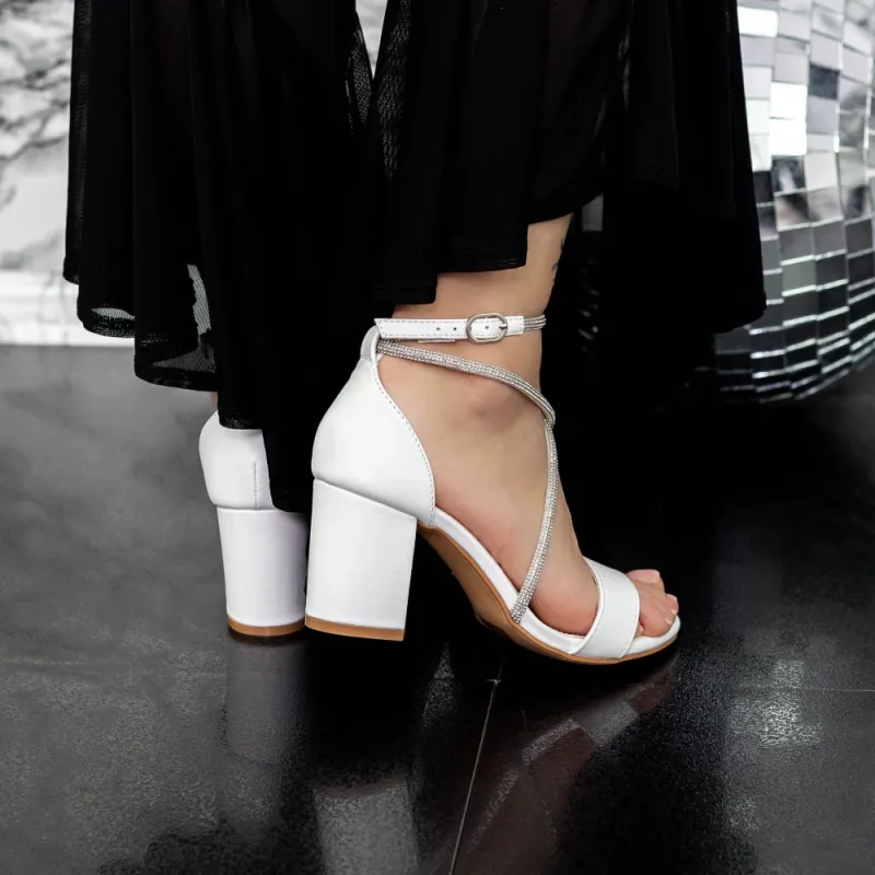 Sandale Dama cu Toc gros 2XKK59 Alb » Reina.Ro