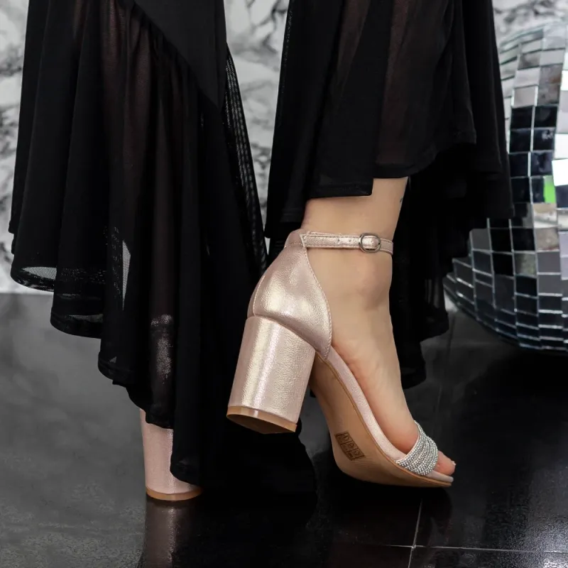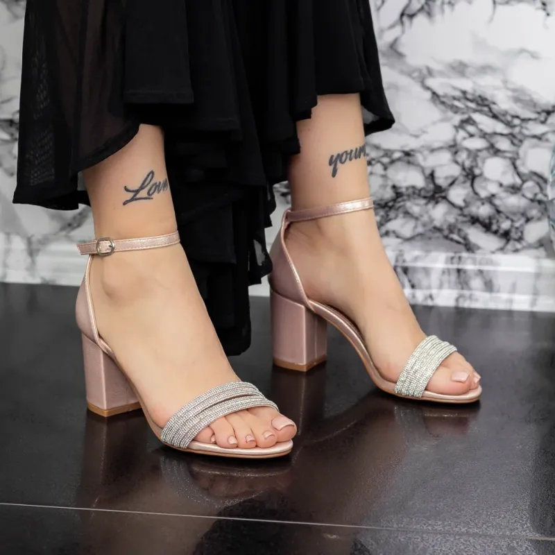 Sandale Dama cu Toc gros 2XKK30 Champagne Mei