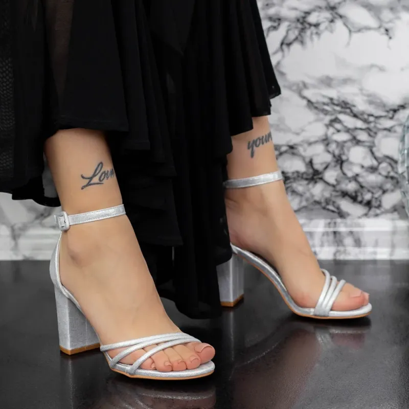 Sandale Dama cu Toc gros 2XKK32 Argintiu Mei