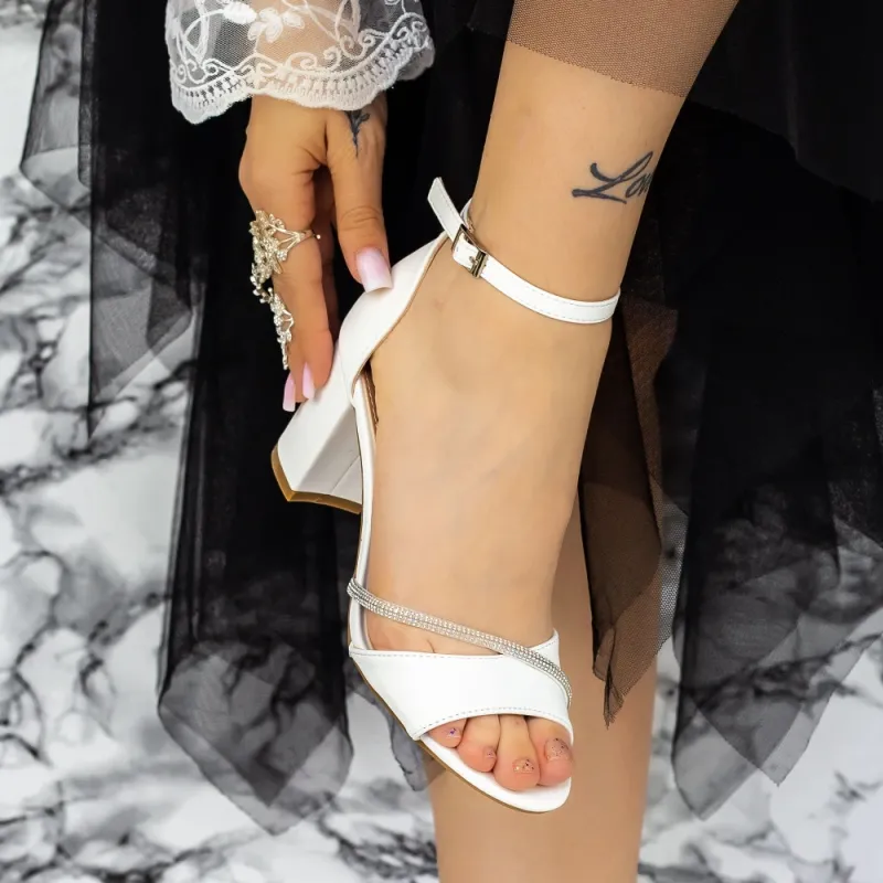 Sandale Dama cu Toc gros 2RG23 Alb Mei