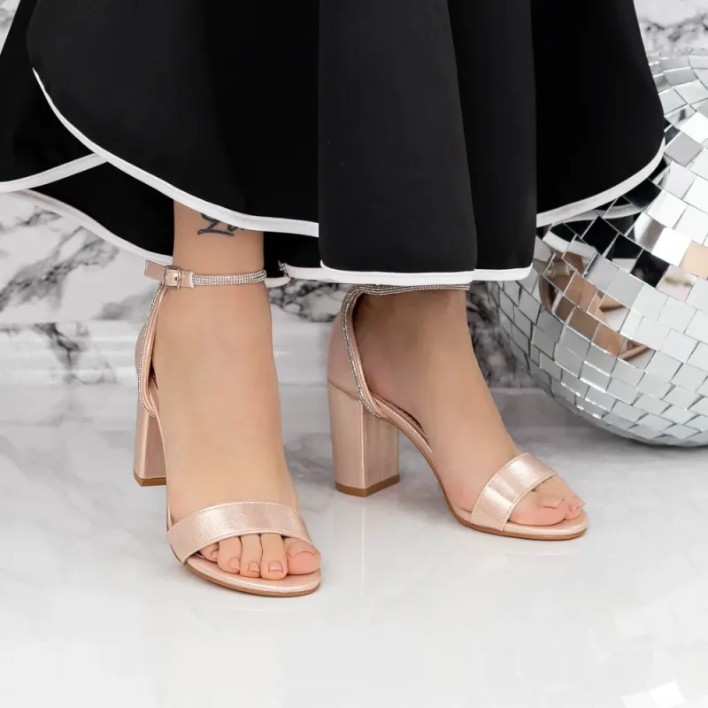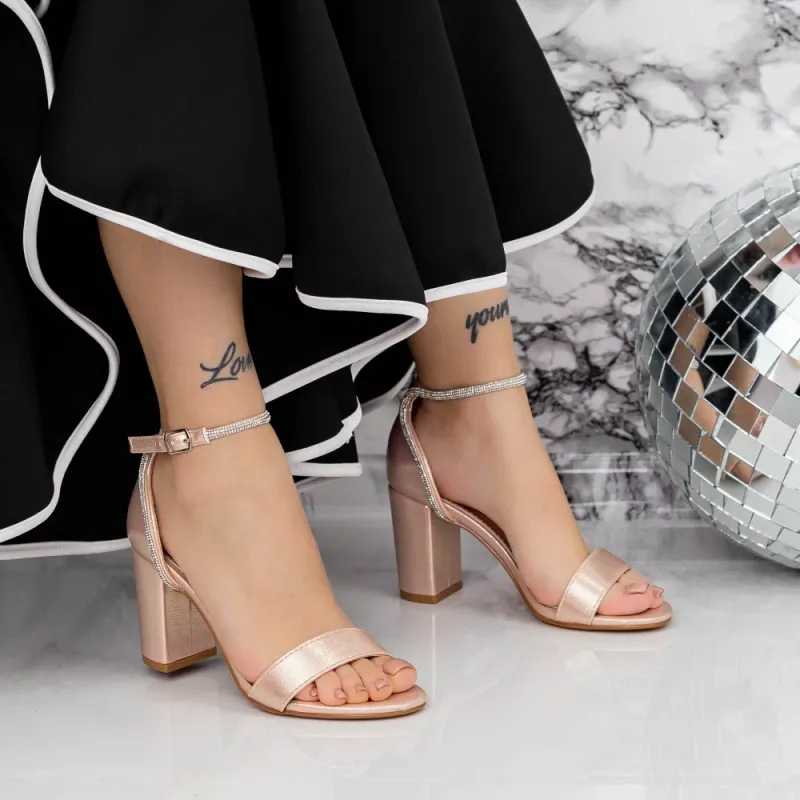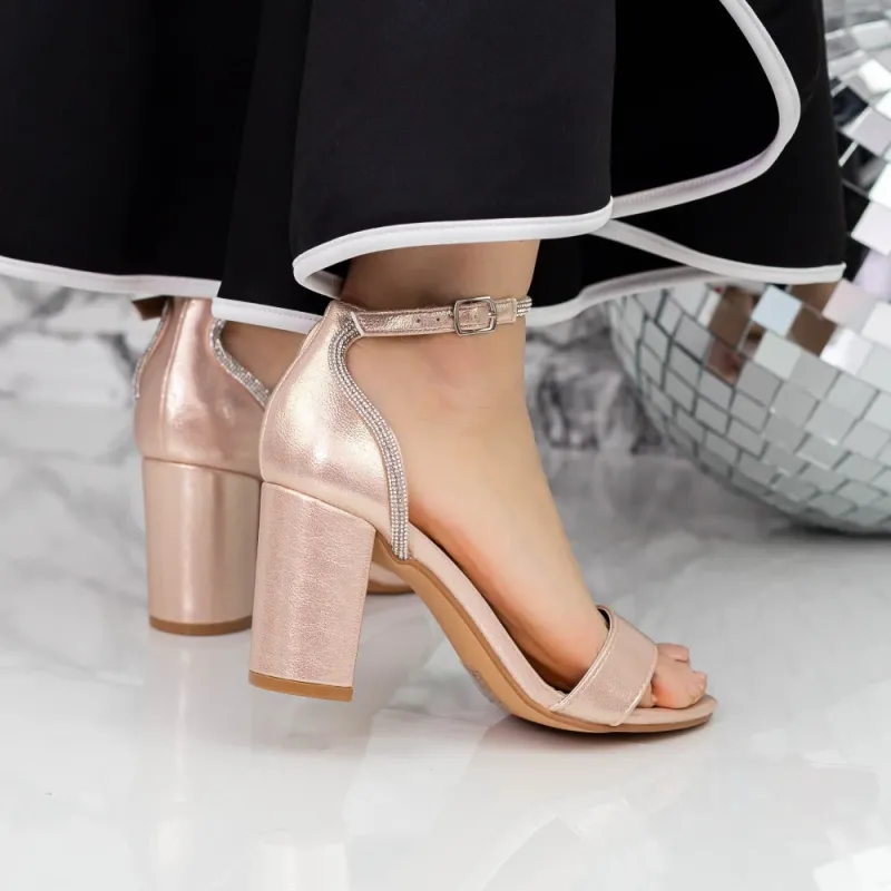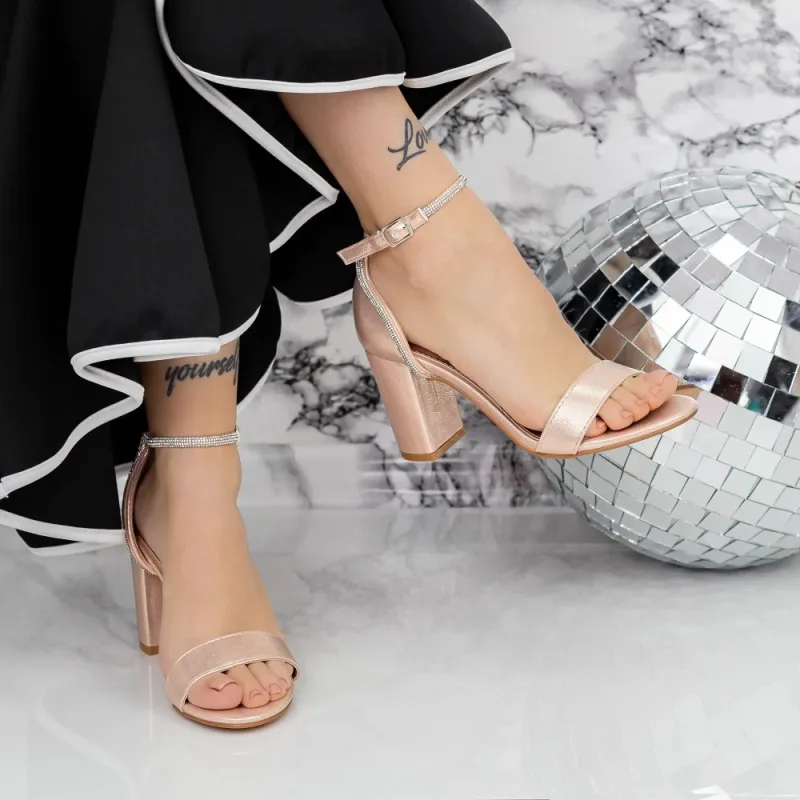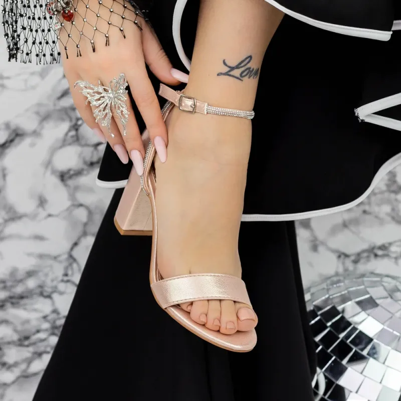 Sandale Dama cu Toc gros 2XKK58 Champagne Mei