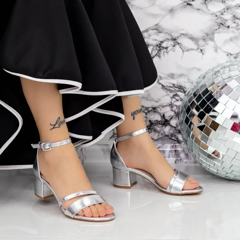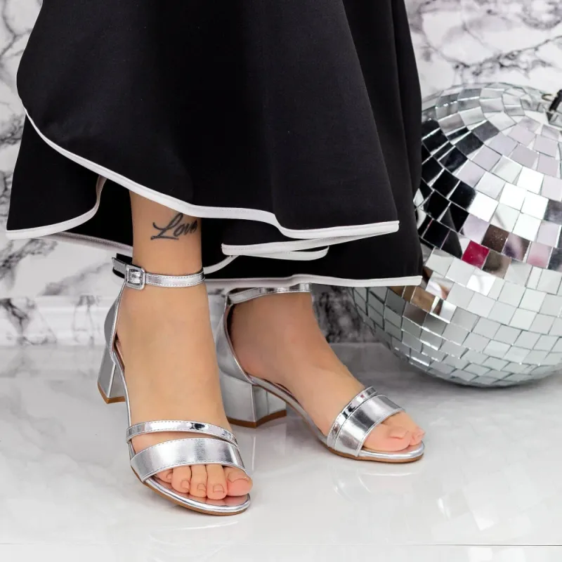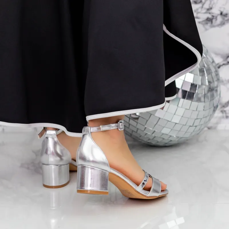 Sandale Dama cu Toc gros 2XKK85 Argintiu » Reina.Ro