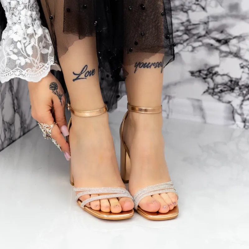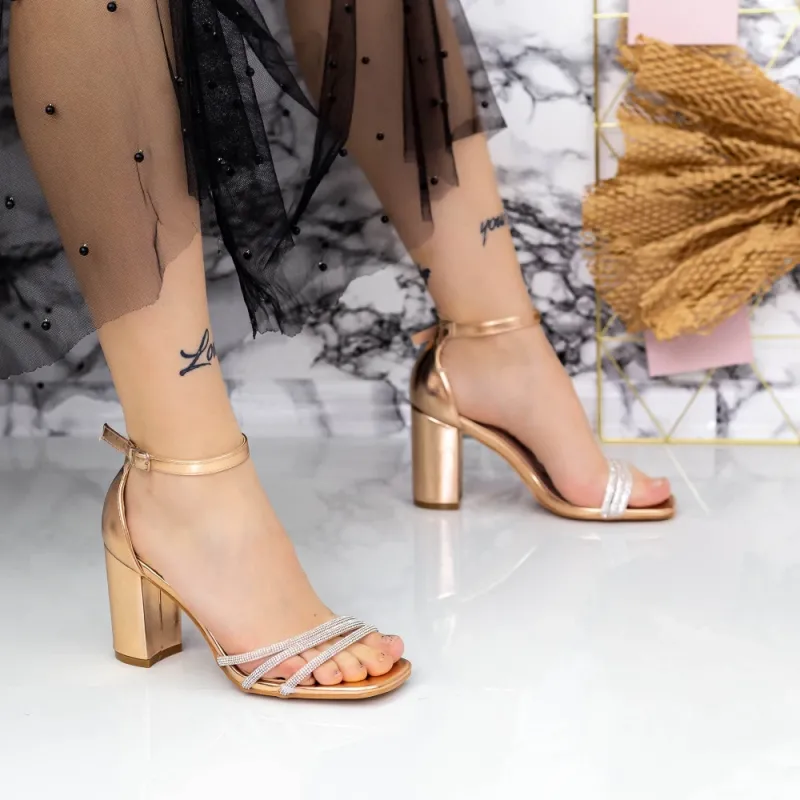 Sandale Dama cu Toc gros 2RG18 Champagne Mei