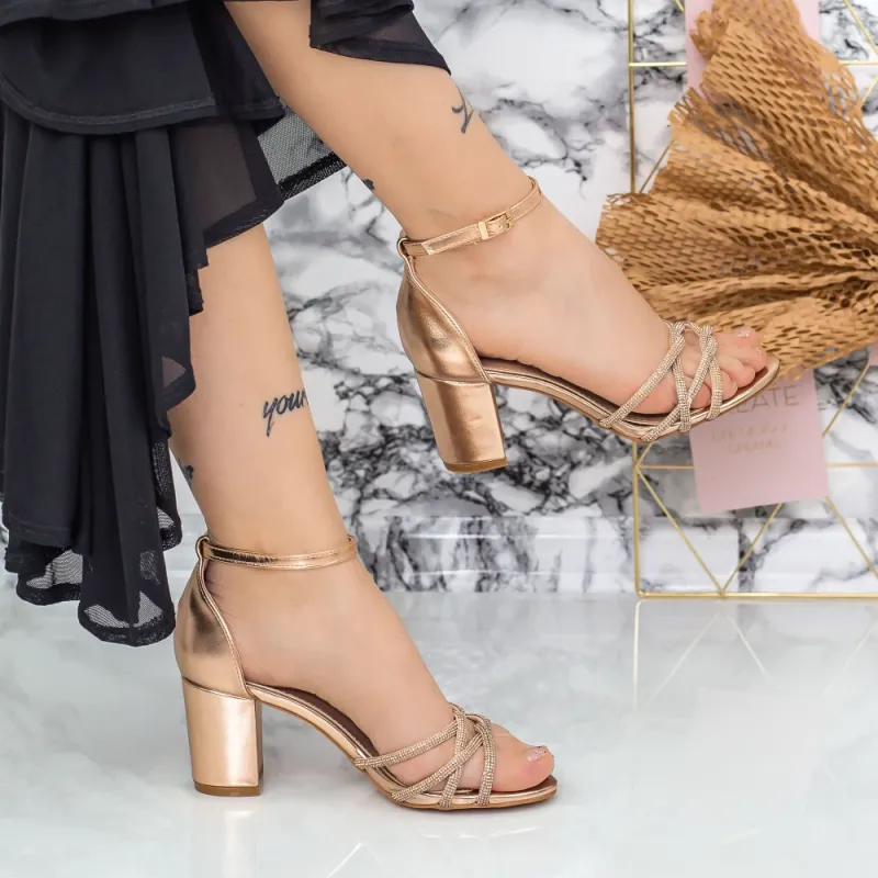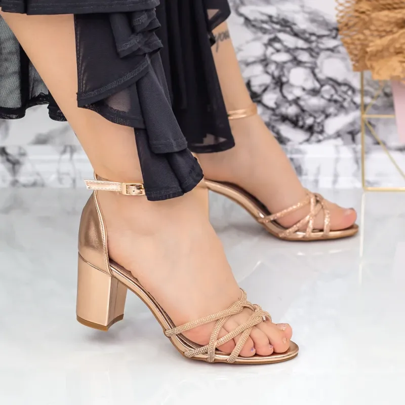 Sandale Dama cu Toc gros 2RG11 Champagne Mei