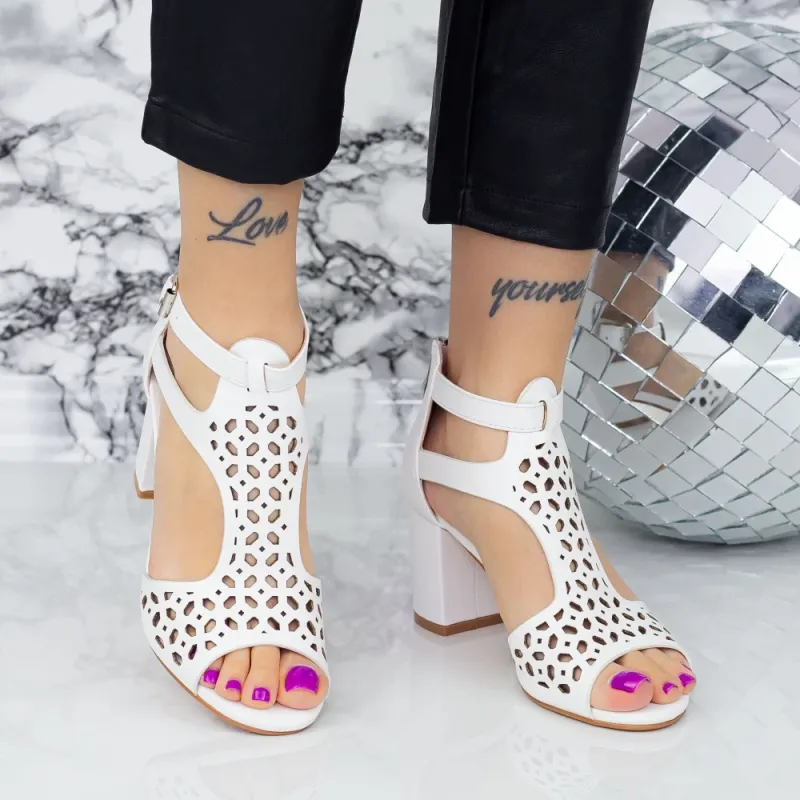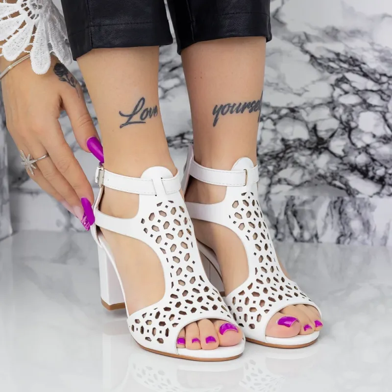 Sandale Dama cu Toc gros 2XKK98 Alb Mei