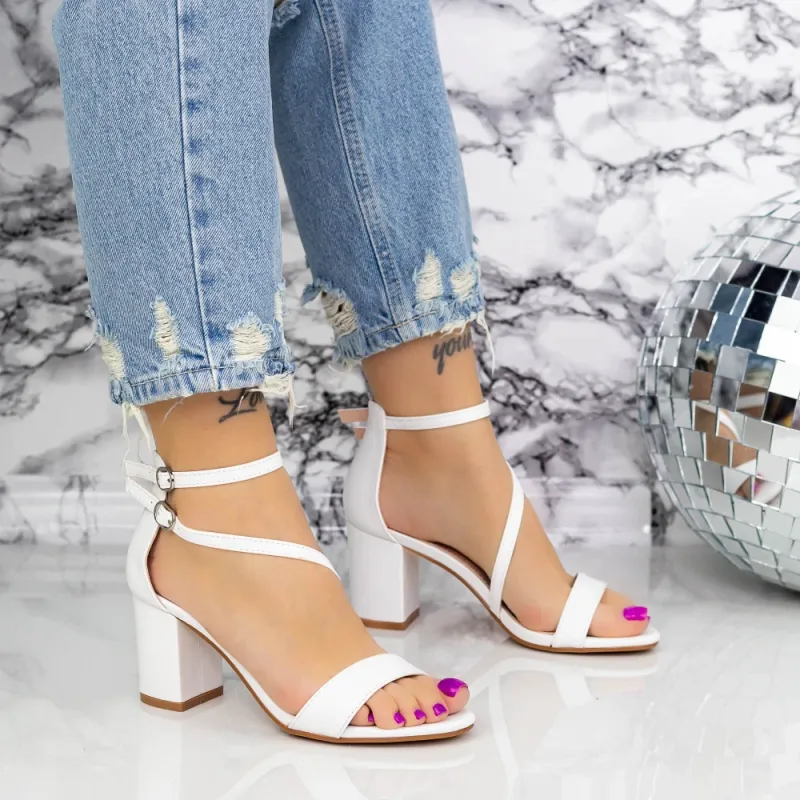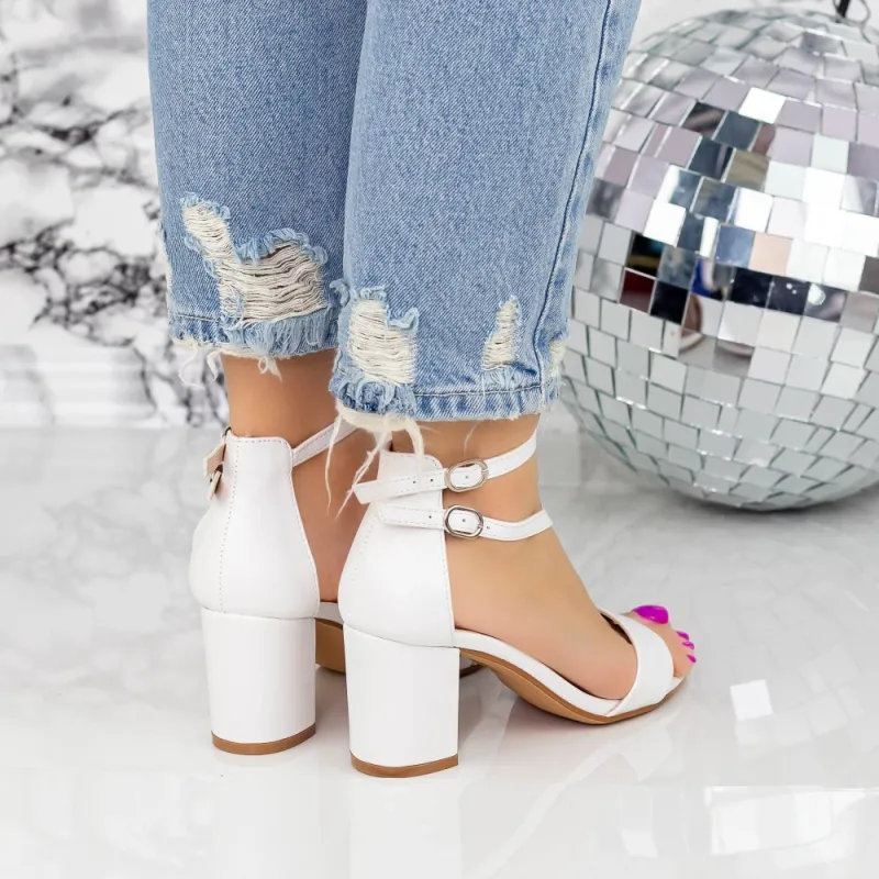 Sandale Dama cu Toc gros 2XKK12 Alb » Reina.Ro