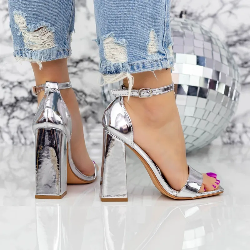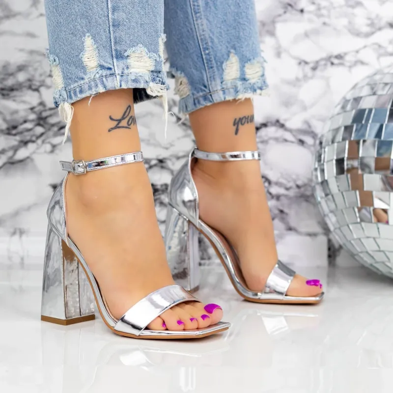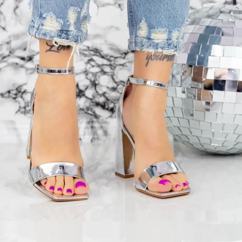 Sandale Dama cu Toc gros 2XKK62 Argintiu Mei