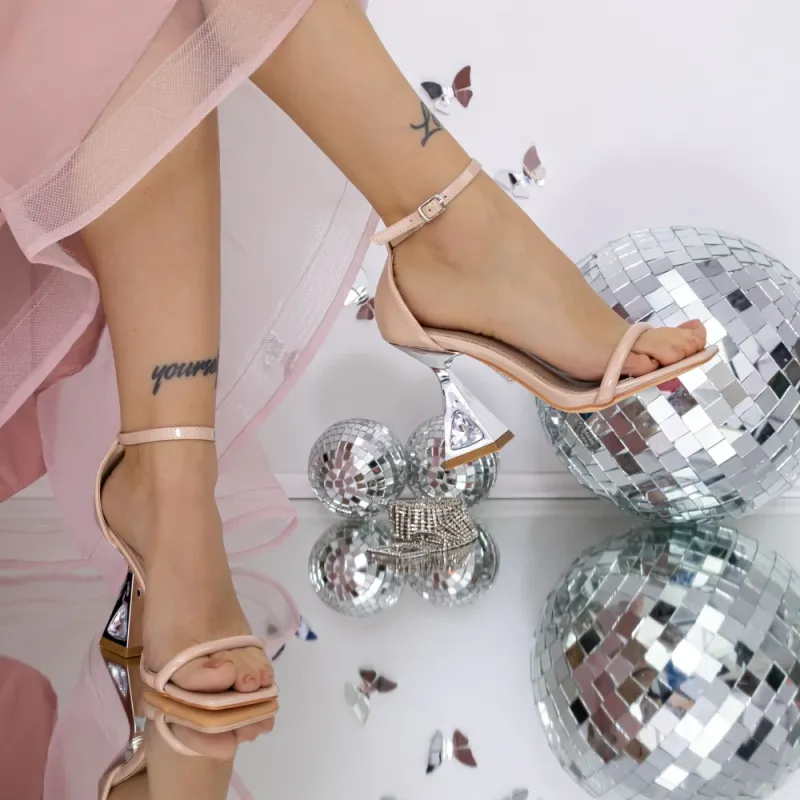 Sandale Dama cu Toc Gros 3NE12 Nude | Reina