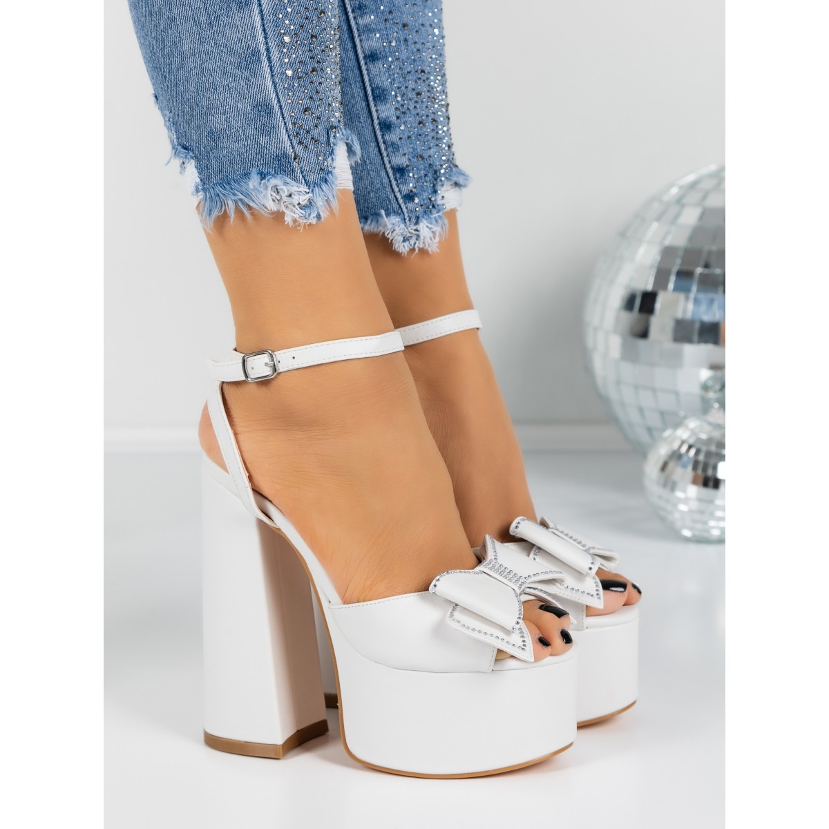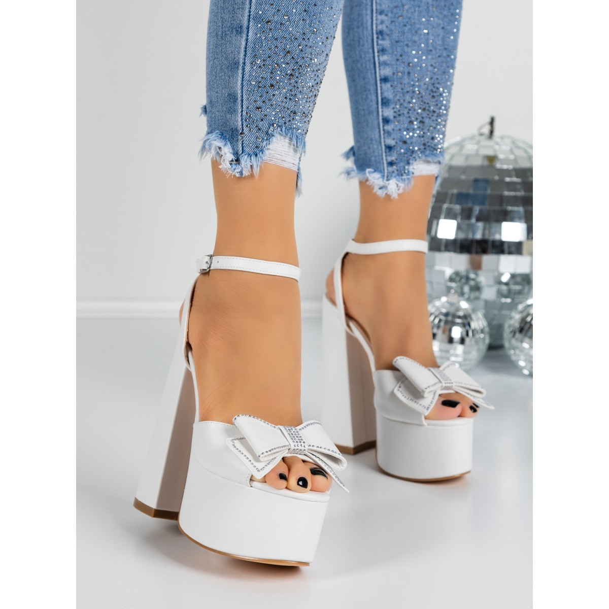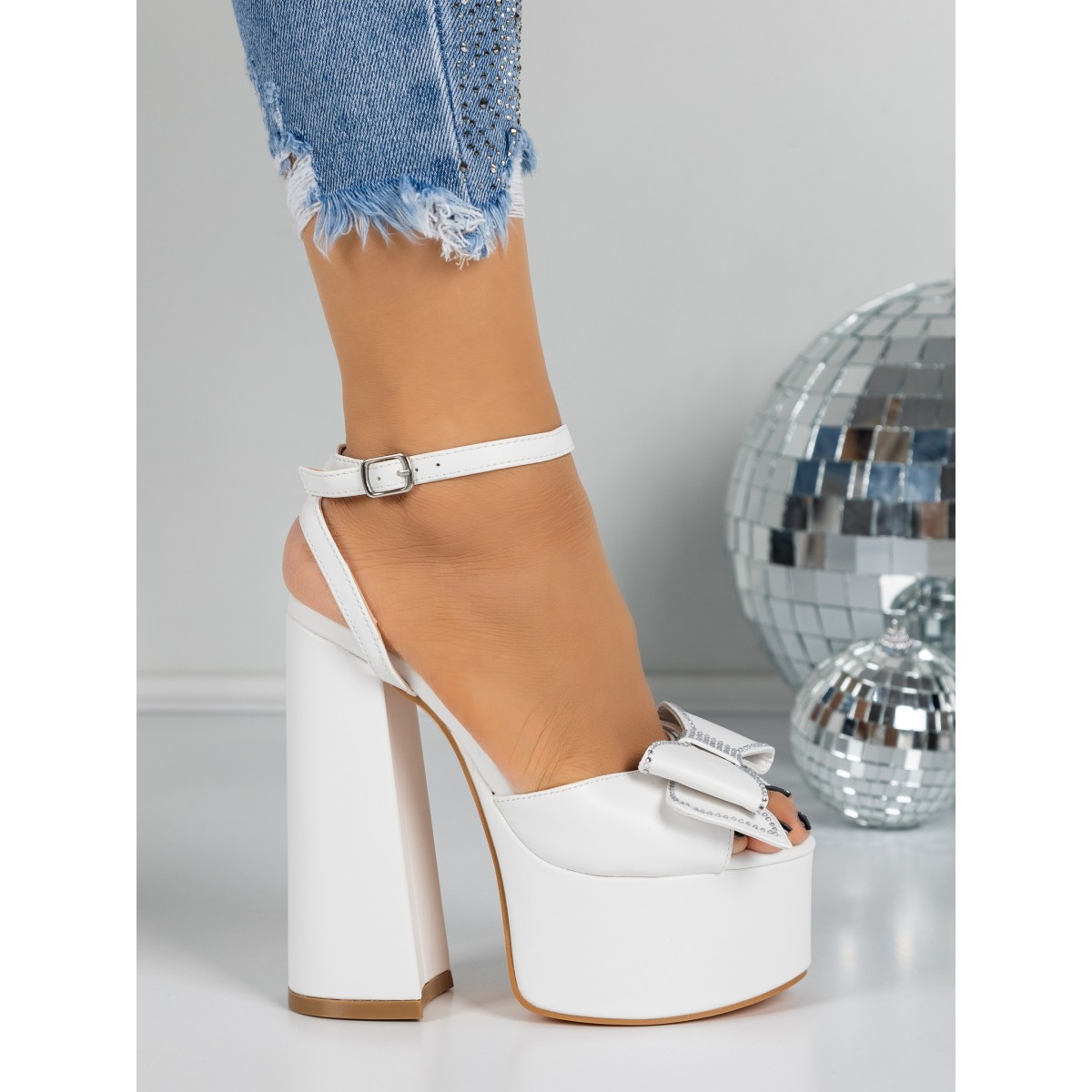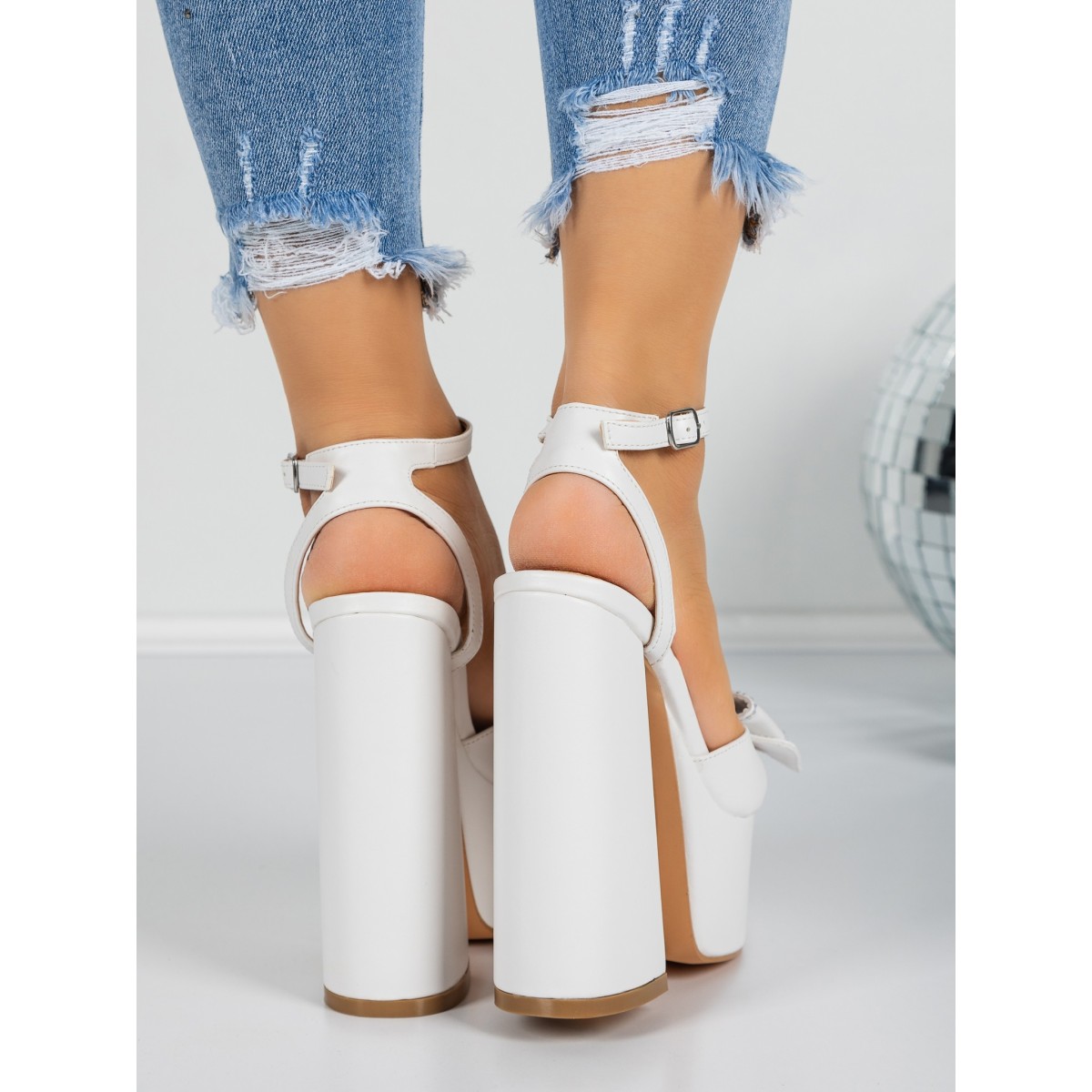 Sandale Dama cu Toc Gros si Platforma 3KV52 WHITE | MEI