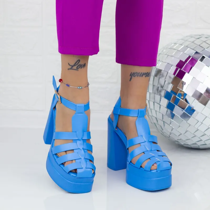 Sandale Dama cu Toc gros si Platforma TN-39 Albastru Reina