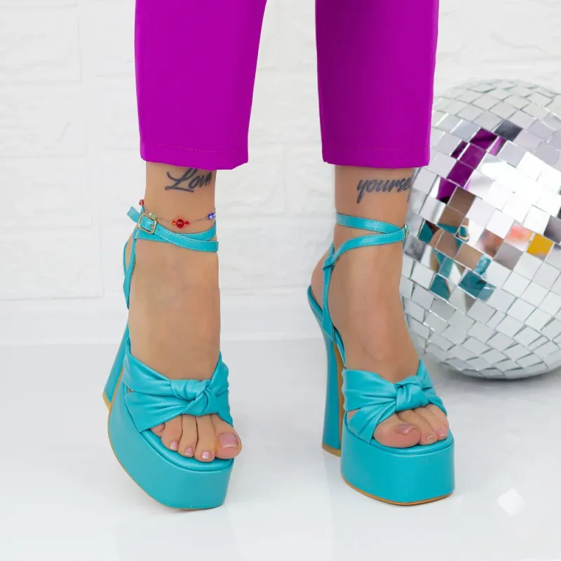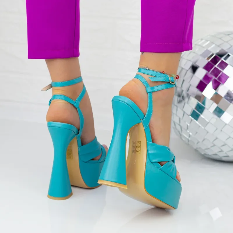 Sandale Dama cu Toc gros si Platforma 956-19 Albastru Reina