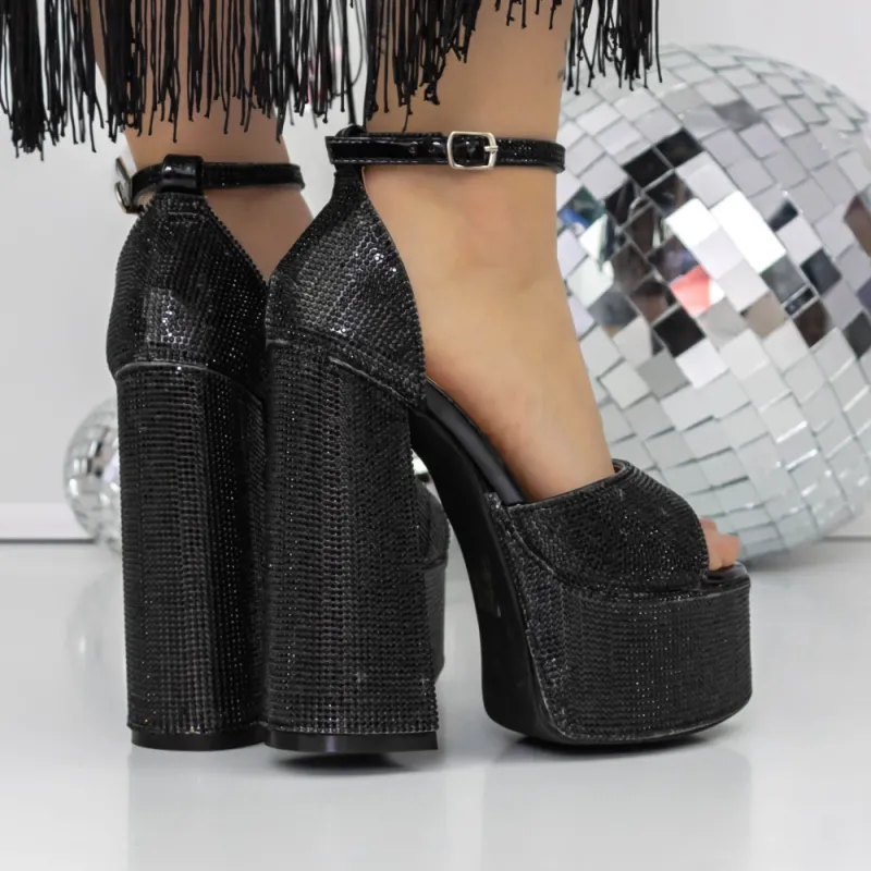 Sandale Dama cu Toc Gros si Platforma 3KV33 Negru » Reina.Ro