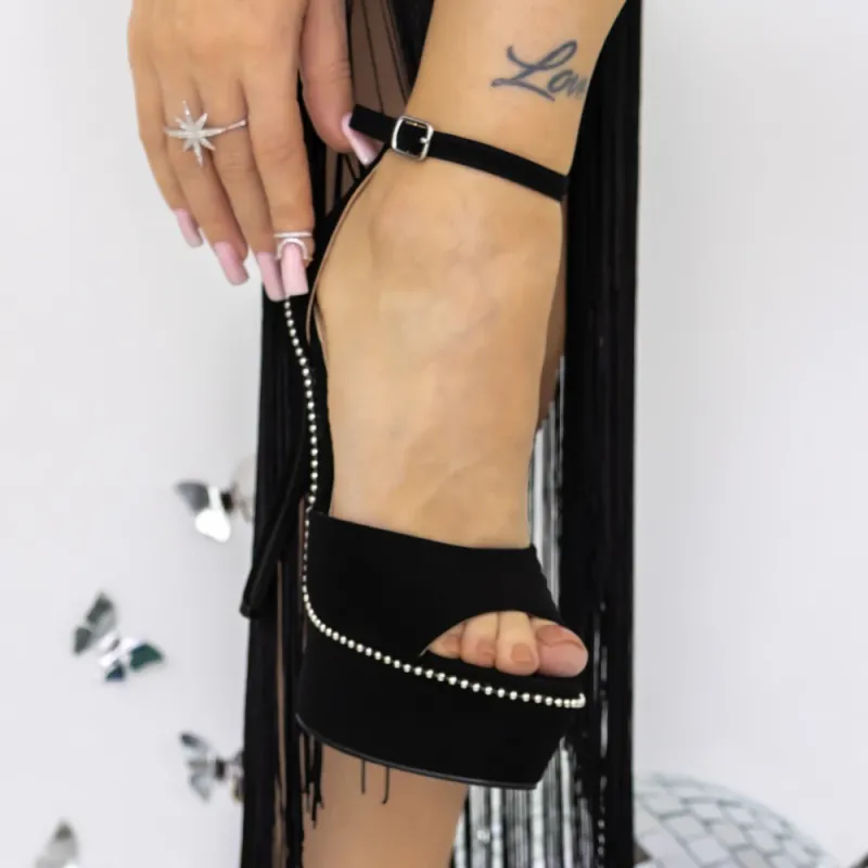 Sandale Dama cu Toc Subtire si Platforma 3KV38 Negru | Reina