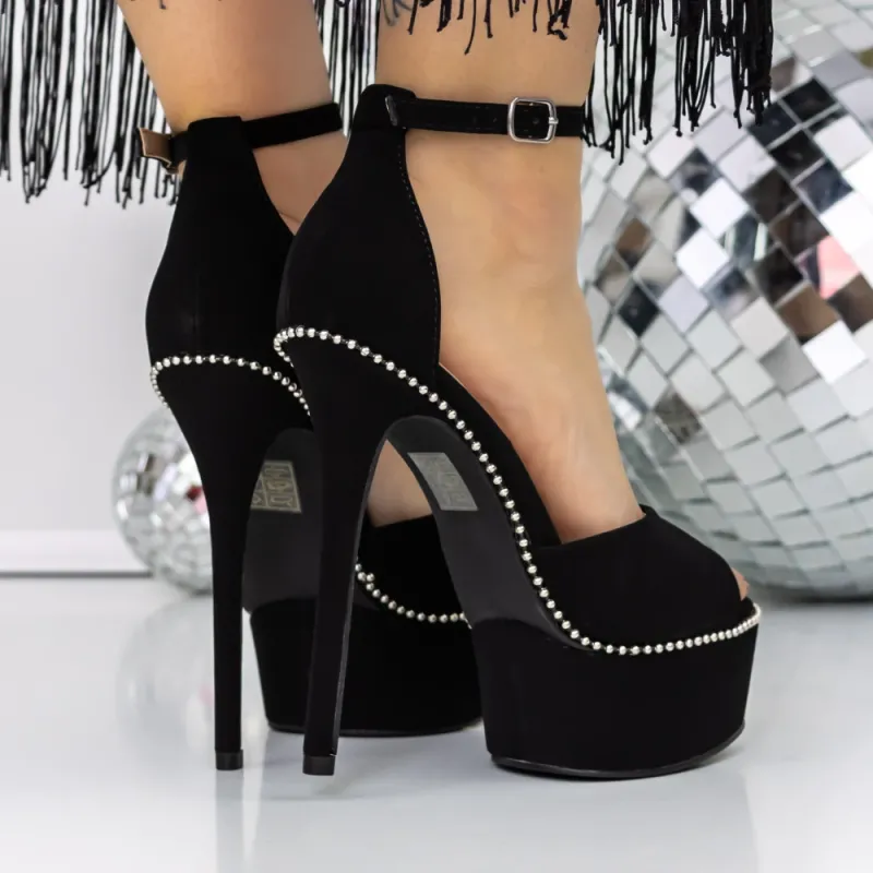 Sandale Dama cu Toc Subtire si Platforma 3KV38 Negru » Reina.Ro