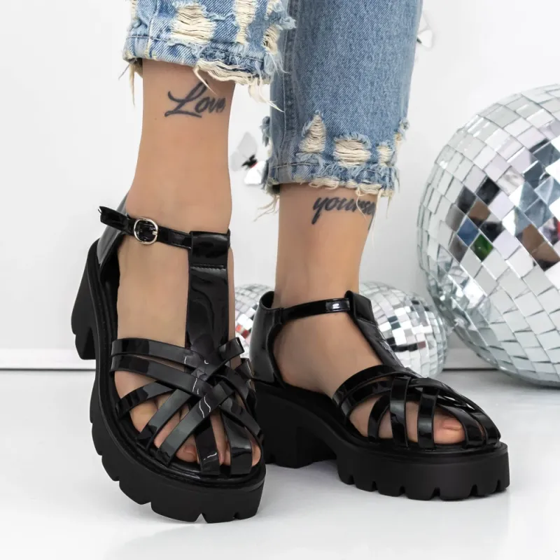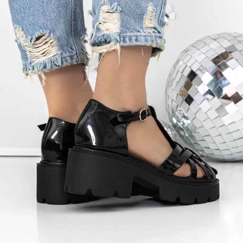 Sandale Dama cu Toc si Platforma 3GZ63A Negru | Reina