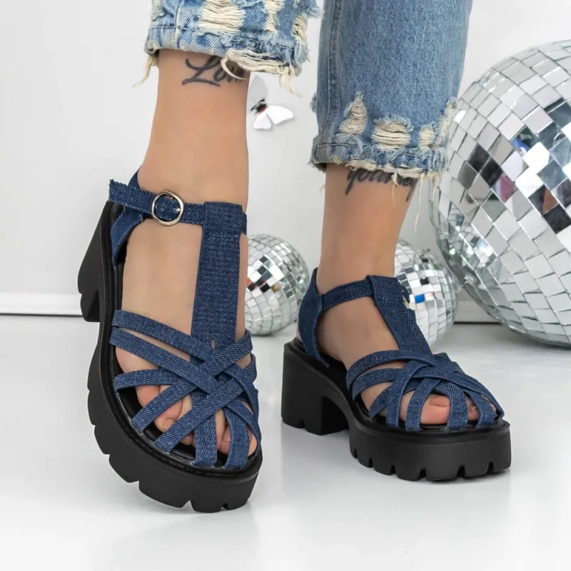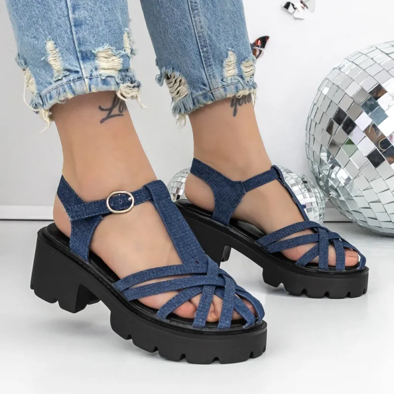 Sandale Dama cu Toc si Platforma 3GZ65A Albastru inchis | Reina