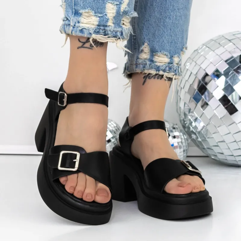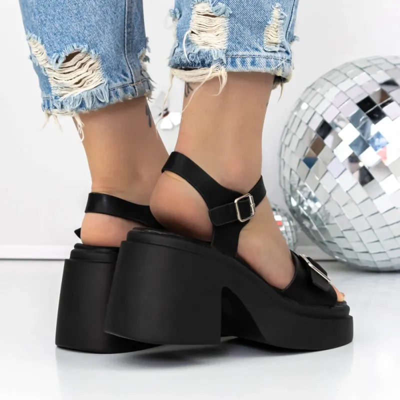Sandale Dama cu Toc si Platforma 3GZ90 Negru | Reina