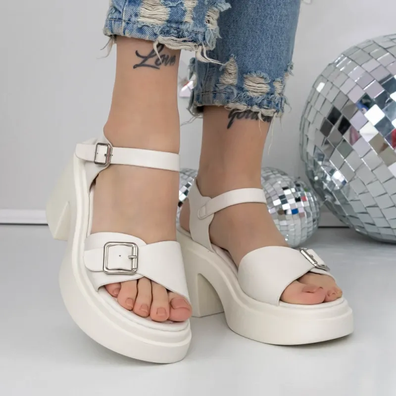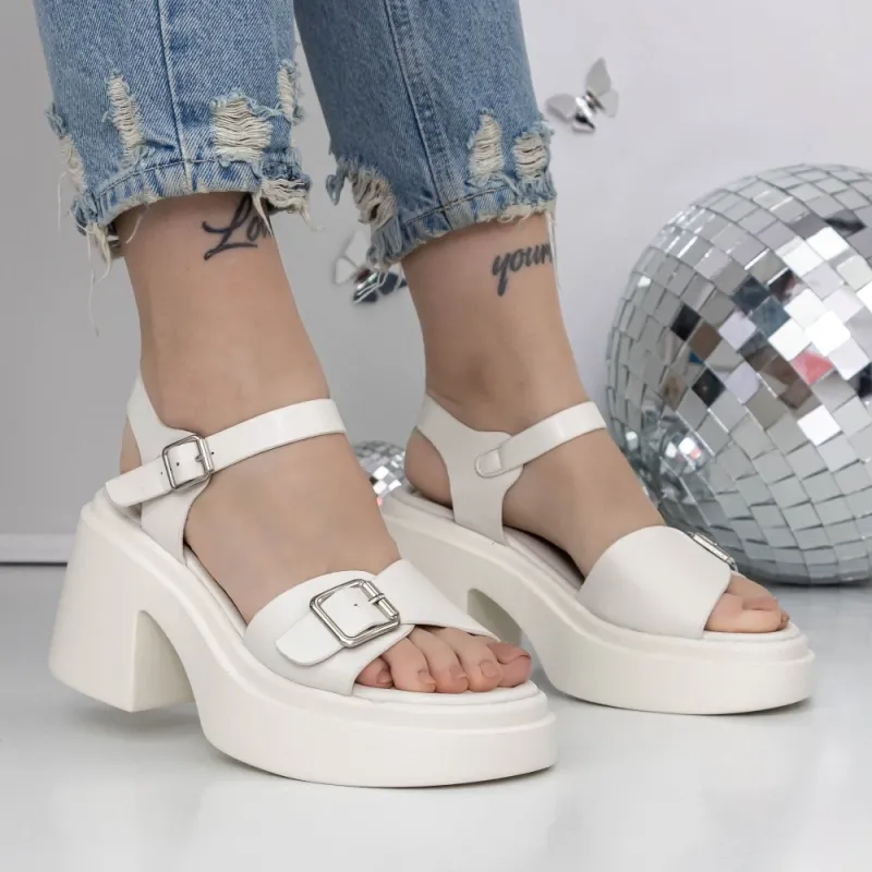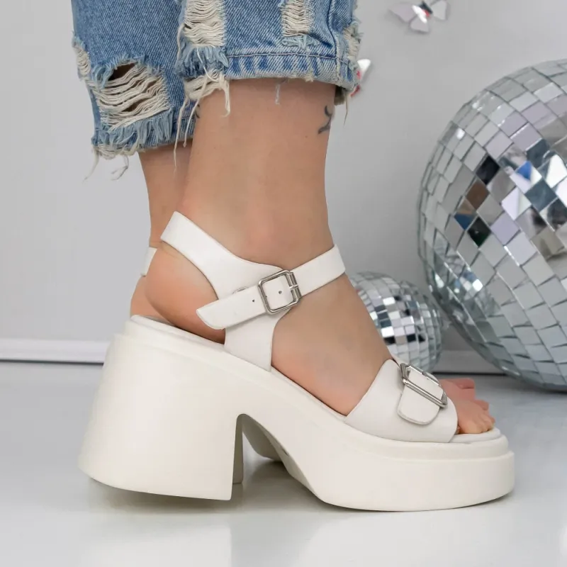 Sandale Dama cu Toc si Platforma 3GZ90 Alb | Reina
