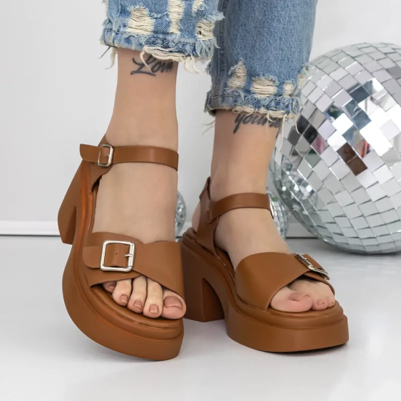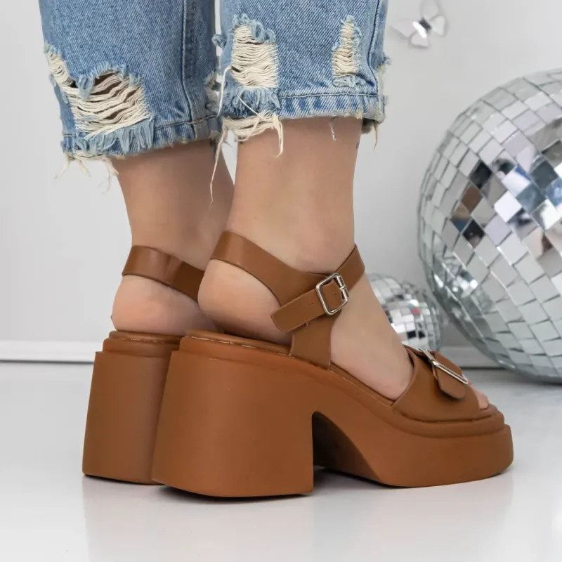 Sandale Dama cu Toc si Platforma 3GZ90 Maro deschis | Reina