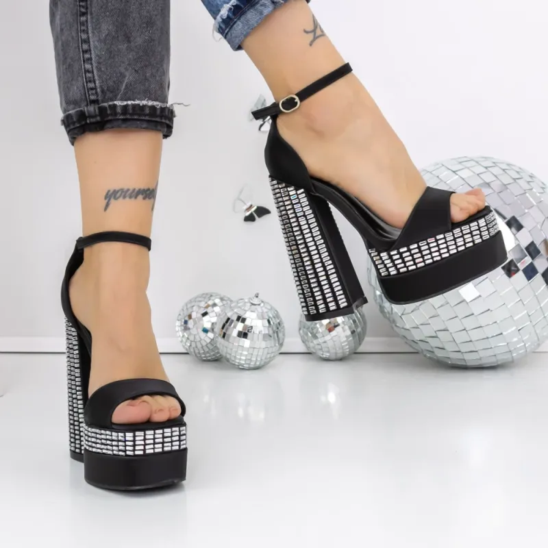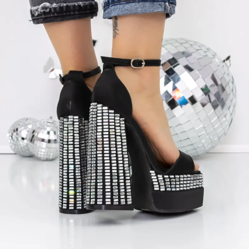 Sandale Dama cu Toc si Platforma 3XKK159 Negru | Reina
