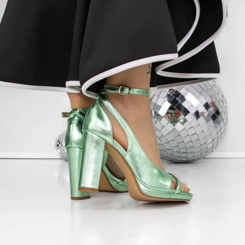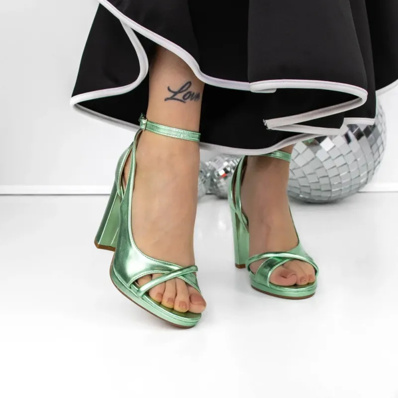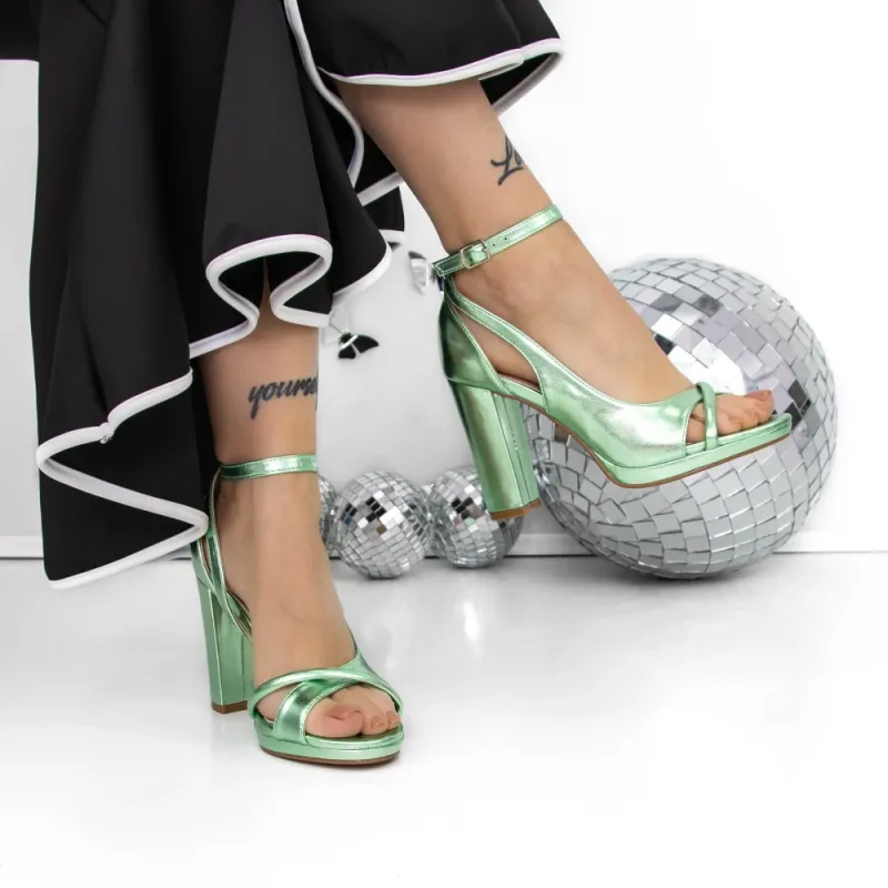 Sandale Dama cu Toc Gros si Platforma 3XKK122 Verde | Reina