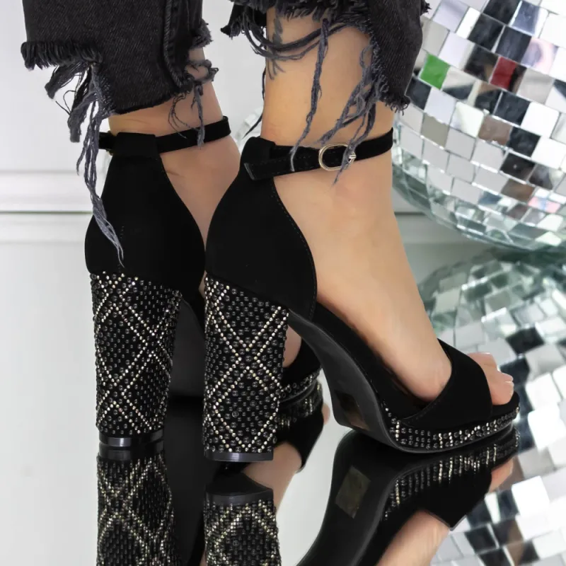 Sandale Dama cu Toc Gros si Platforma 3XKK168 Negru | Reina