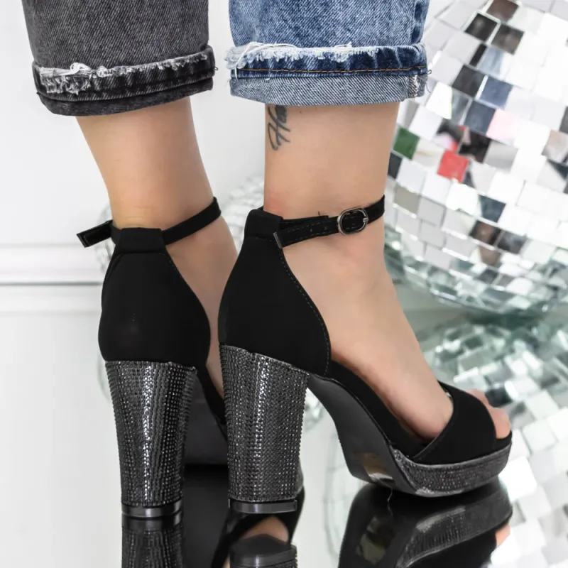 Sandale Dama cu Toc Gros si Platforma 3AXKK182 Negru » Reina.Ro